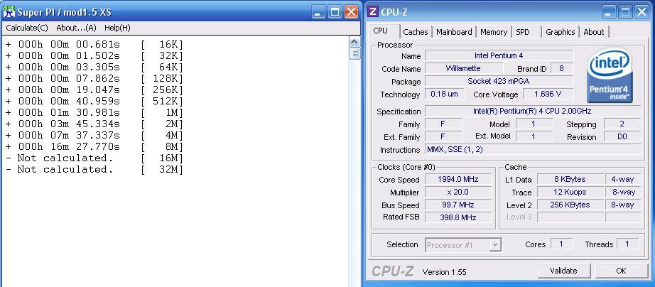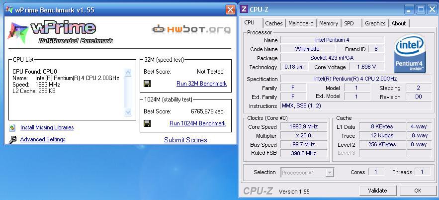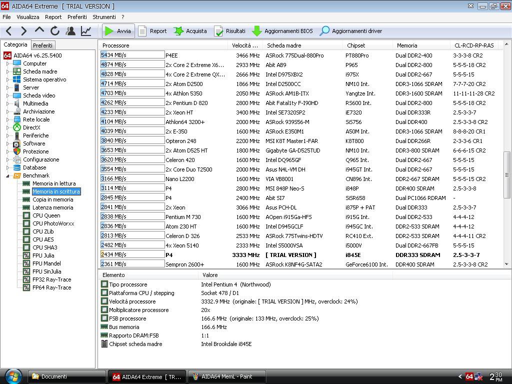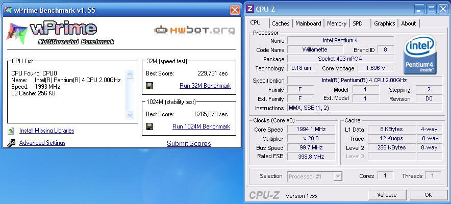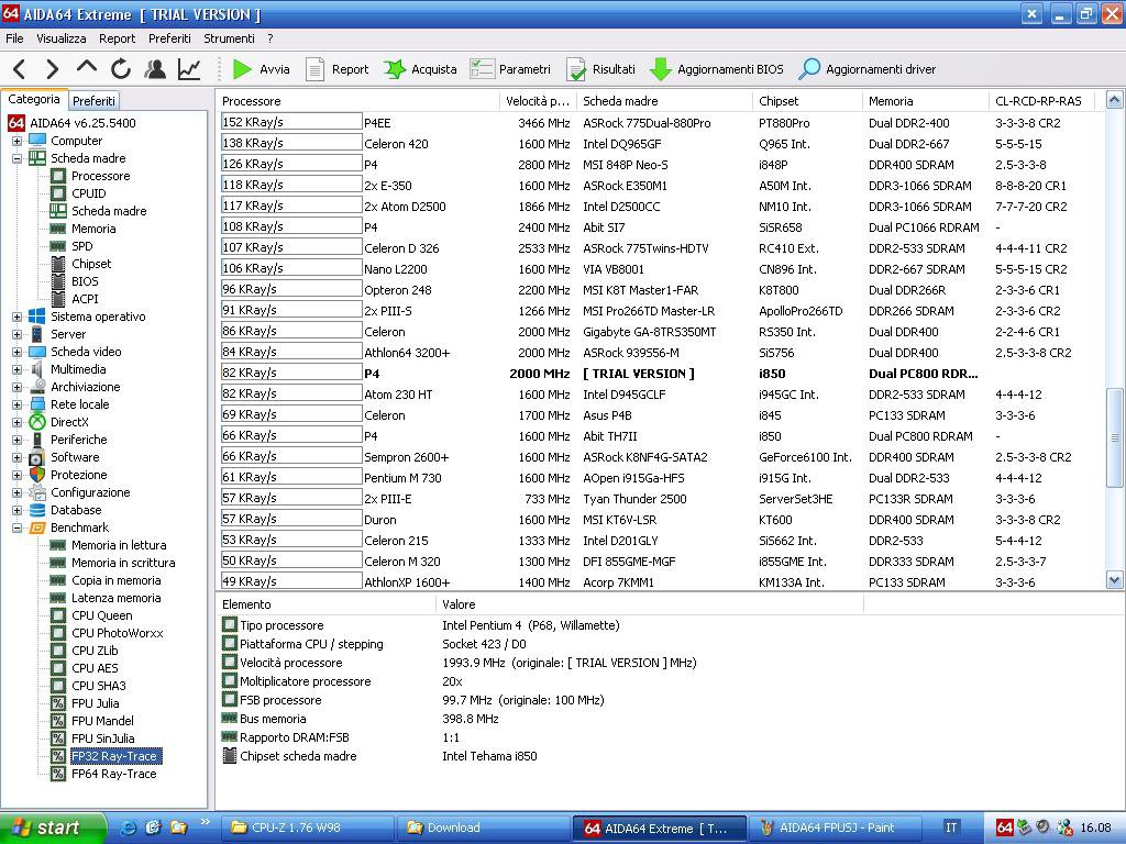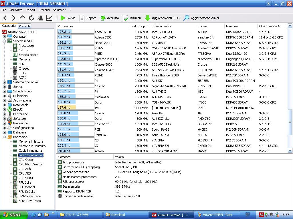 Come CPU ovviamente ho usato un Northwood, esistono anche Prescott 1M/533, ne ho visti alcuni con alte freq. come il 3200, mentre in passato ricordo che avevo visto anche un 3333 (se ricordo bene).