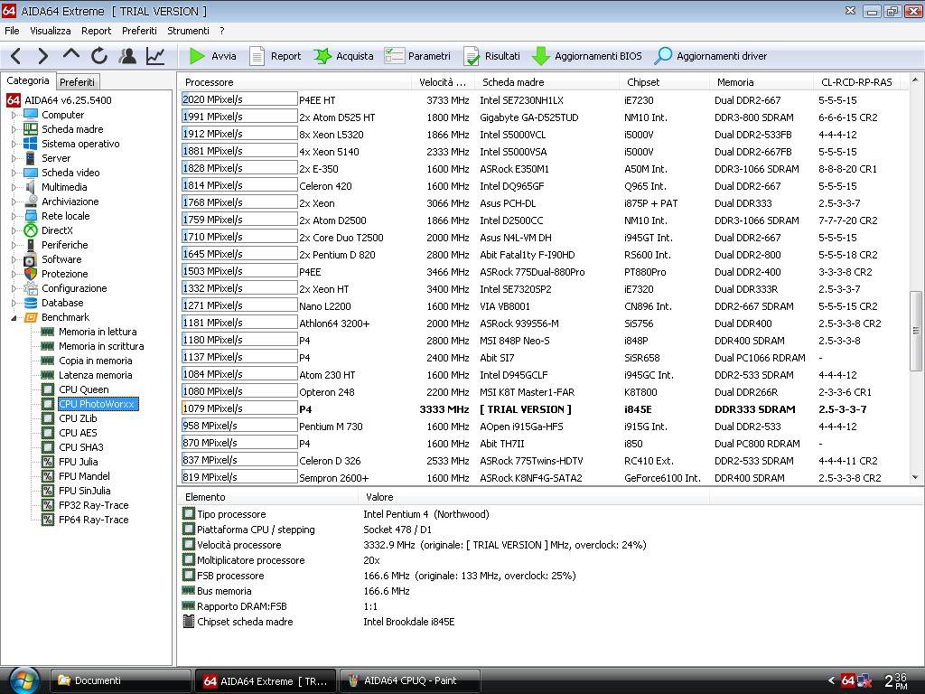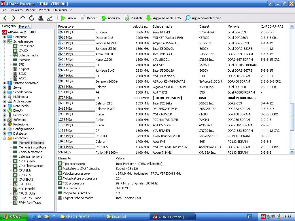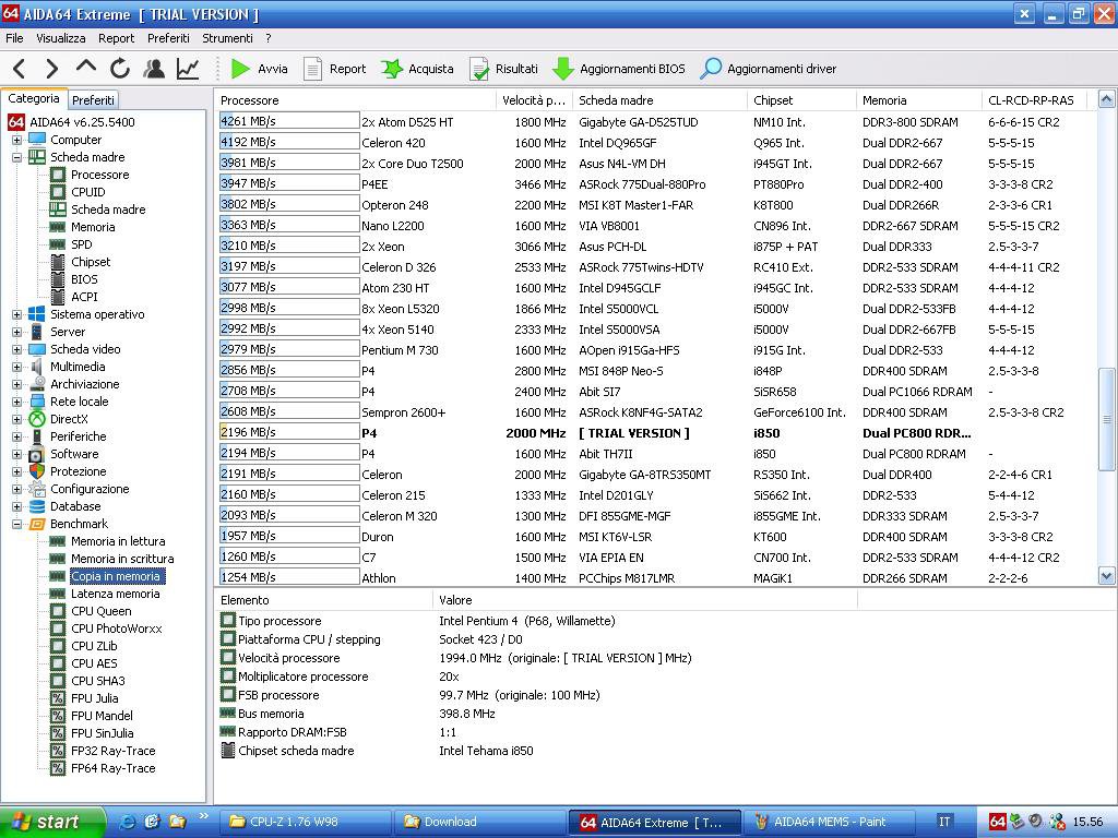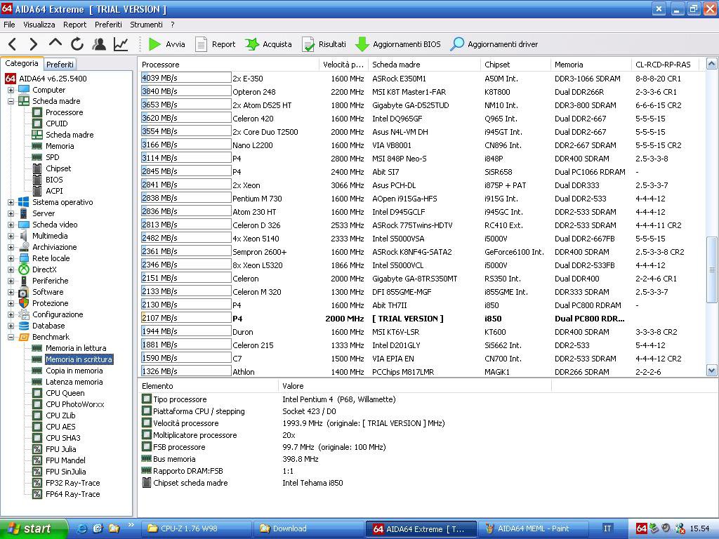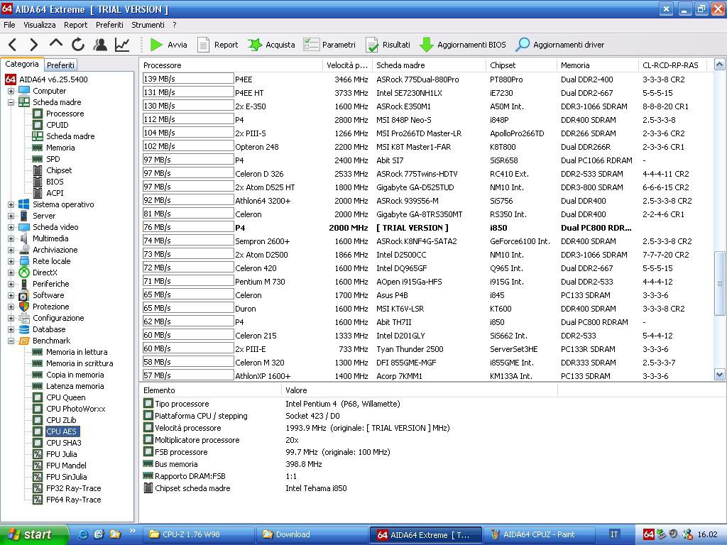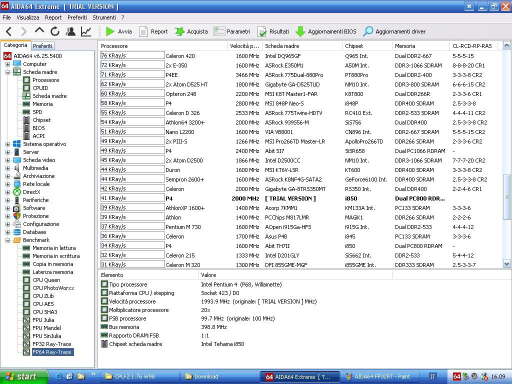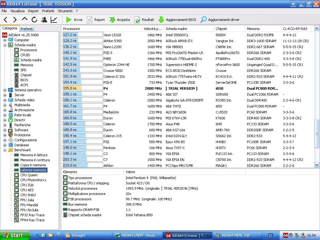 Ho scaricato nel PM questo programma di diagnostica del sistema, ver.6.25.5400 è una versione di valutazione (30gg), l'ho installato sul PC Internet e ho fatto i bench, all'interno dei bench c'è un elenco abbastanza completo di varie CPU dai socket 7 a CPU che al momento pochi possono permettersi, ma magari tra 10 anni chissà magari diventano accessibili. Metto le immagini, sono un po' tante ma se volete, la prossima volta metto un link e le immagini le metto da un'altra parte.