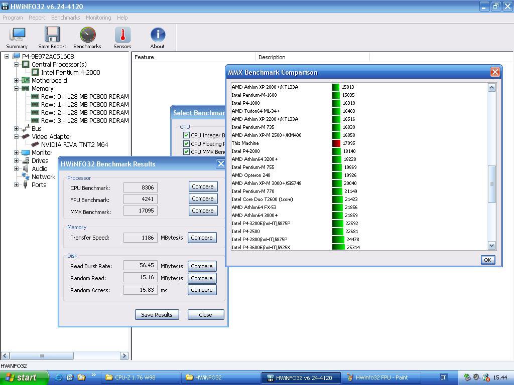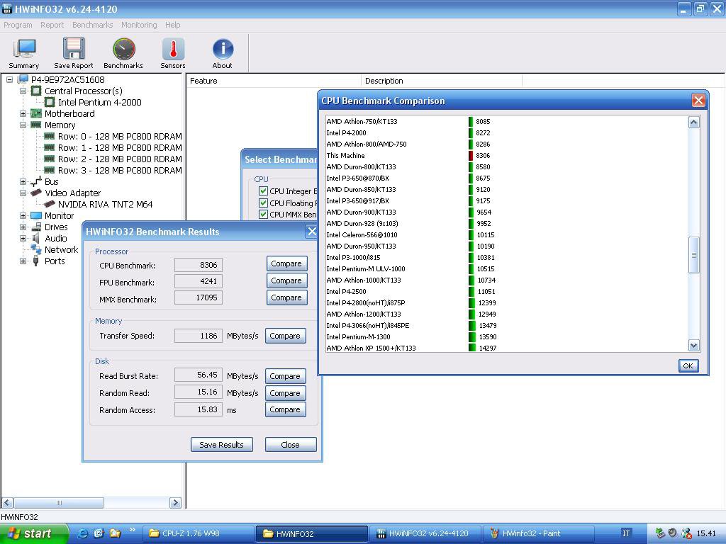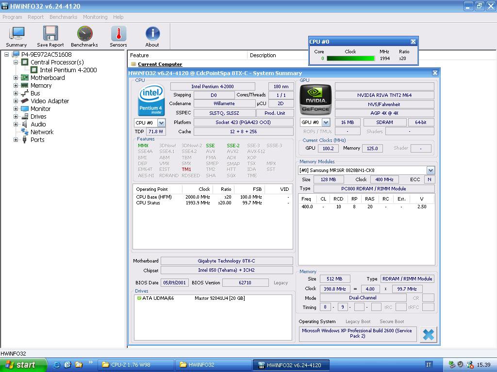 Ecco i bench del P4 2000 Willamette (423:azz:/emoticons/azz.gif.c257d5ef8faeecab3ce48882adaecaf4.gif" title=":azz:" width="21" >), i bench sono eseguiti con 512MB di RDRAM (le famose RAMBUS), ho comunque messo i bench che migliorano dopo aver messo su 1GB di RDRAM, quelli che non ci sono sono praticamente uguali come punteggi.