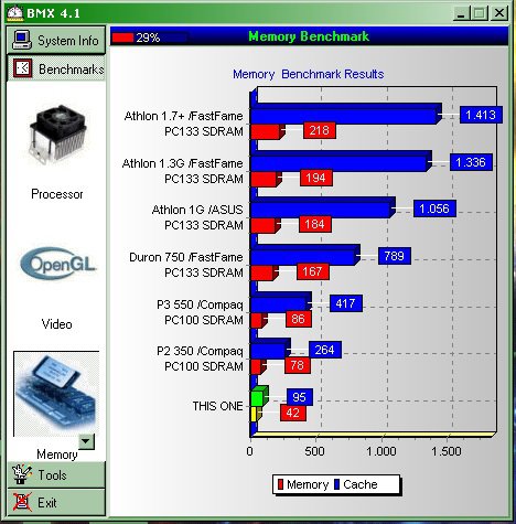 La cognac è meglio l' ho provata con un Piii a 933 e parte bene su hwinfo ultimo però mi da risultati scarsi con 528mega in lettura e 226 in scrittura della ram con 2 moduli . digerisce solo quelli a bassa densita e preferibilmente pc100 .
