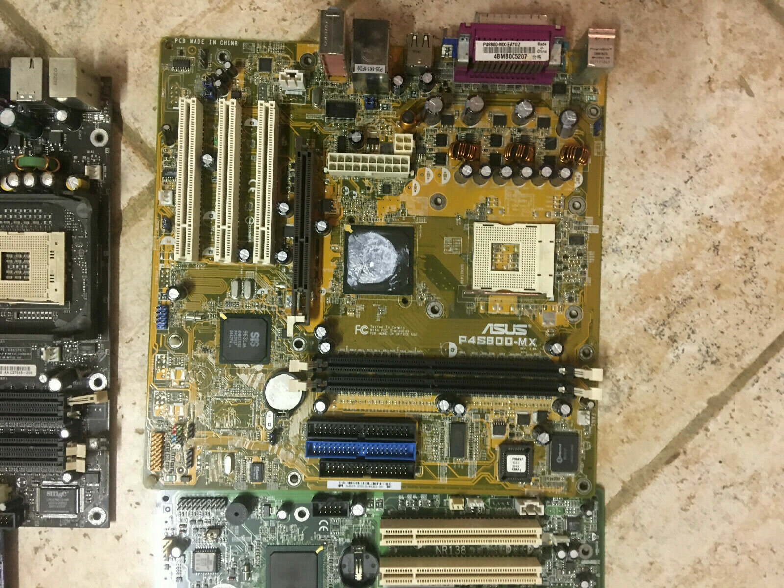 Le tre SKT478 sono ASUS P4S800-MX REV.2.00 chipset SiS, una HP 845GE NSI NR138 VER:A06 con BIOS AMI e chipset Intel, e una Intel 865 PERL chipset Intel, quest'ultima ha i condensatori lato CPU da 820uF 6.3V rigonfi, e un paio di levette per il blocco della RAM mancanti. Nell'ASUS e nell'HP mancano i cestelli per l'aggancio del dissi+fan della CPU, forse ne ho uno da poter usare ma non ricordo se era a posto o aveva gli agganci rotti?😕/emoticons/confused.png.1268e67724eeff1d2e5126476e482704.png" title="😕" width="16" />