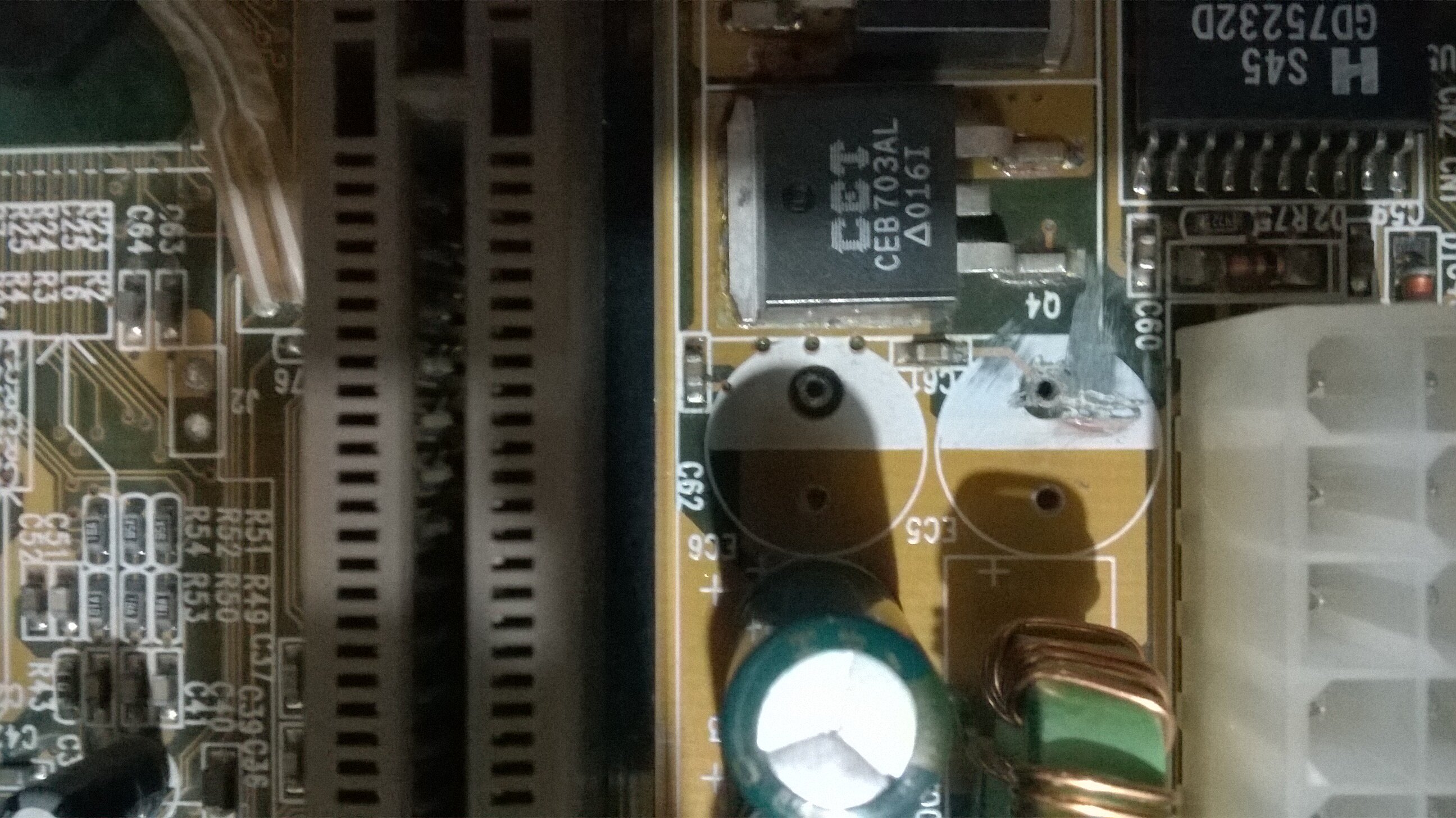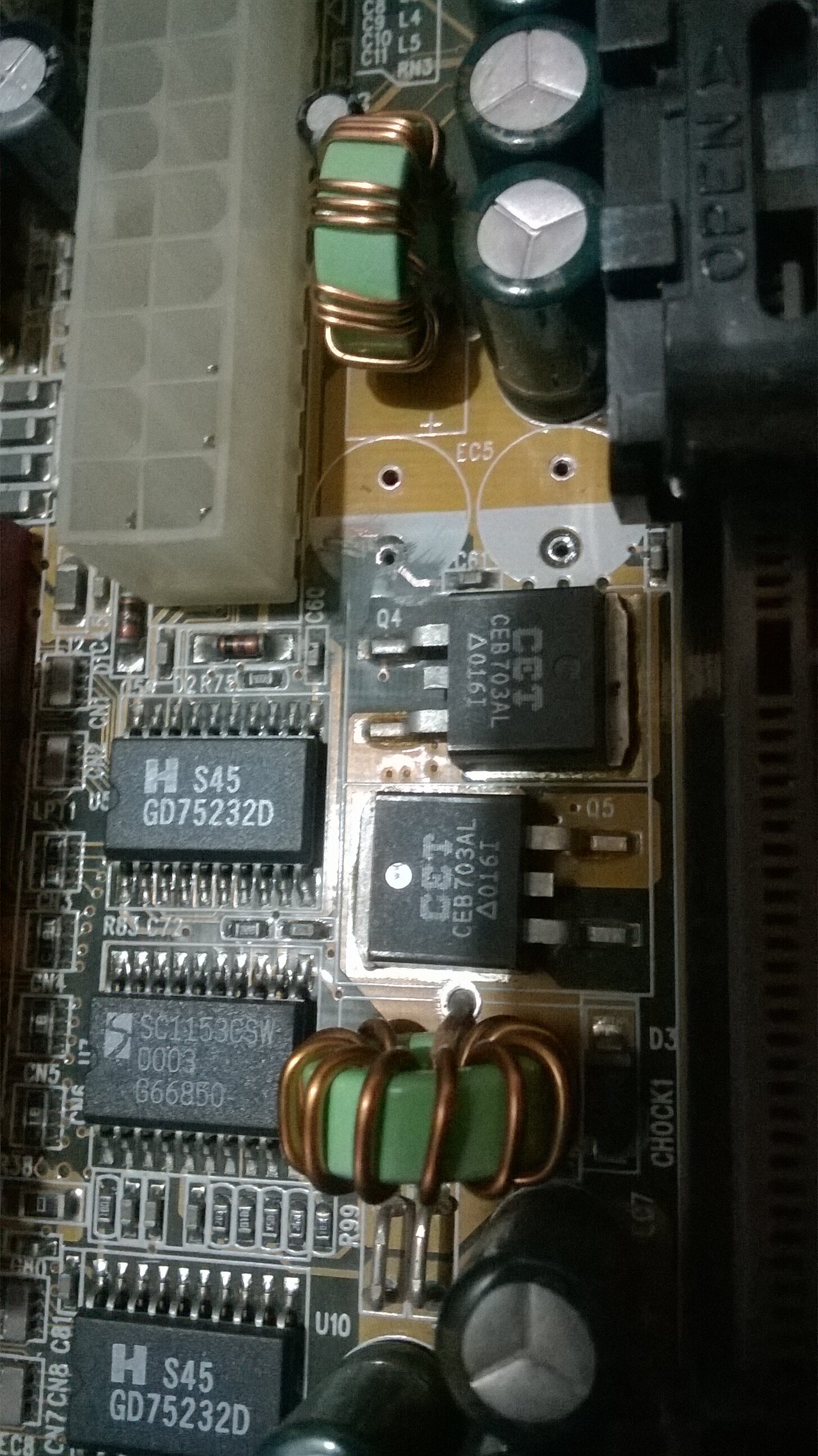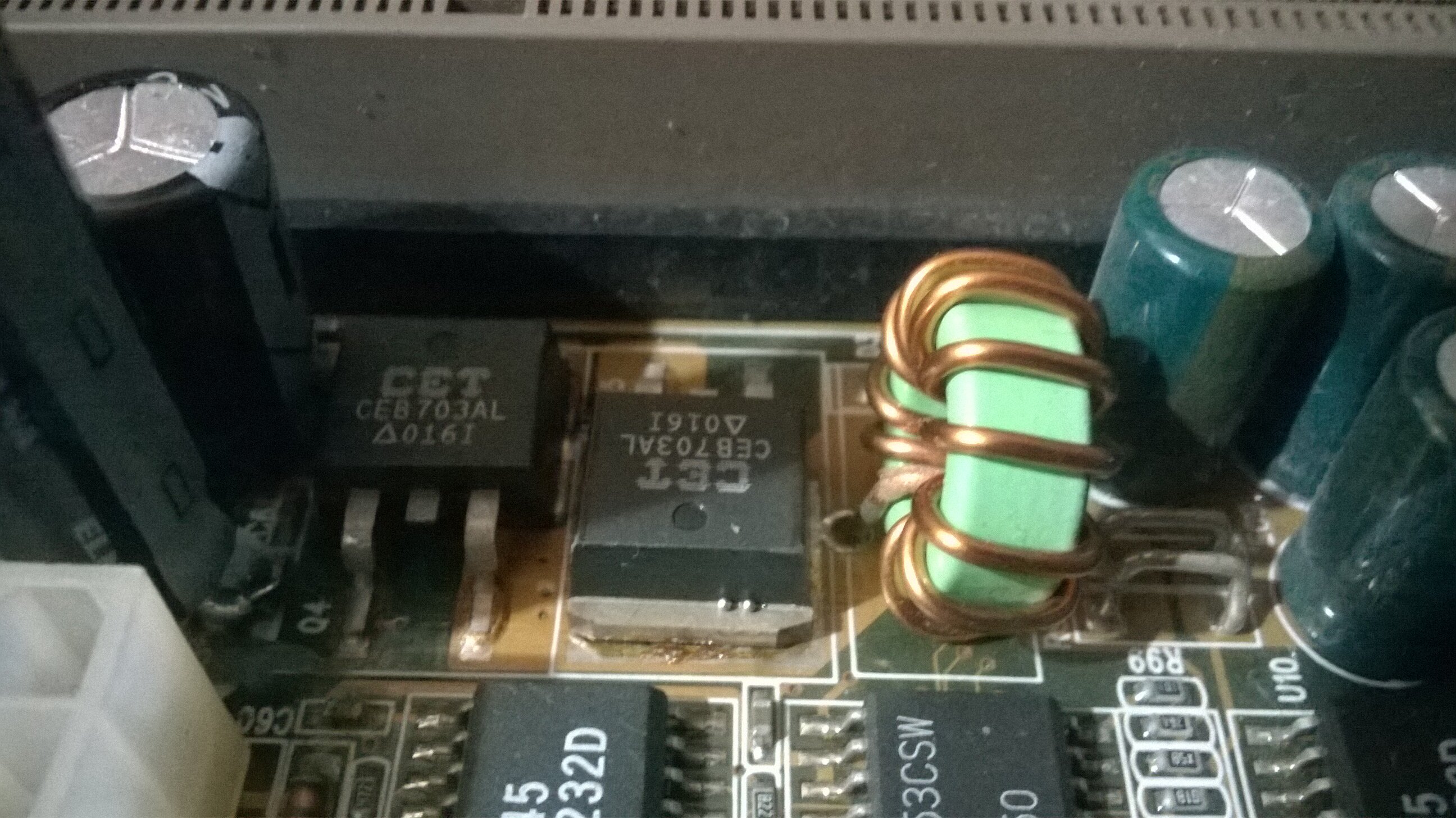Facendo vari controlli sui Mosfet delle MSI, una delle quali è quella che si è fritta, ho cercato altre MB che avessero lo stesso Mosfet CEB703AL, casualmente è presente in un'altra MB guasta, tempo fa avevo iniziato a fare dei controlli, per vedere se riuscivo a risolvere il guasto.