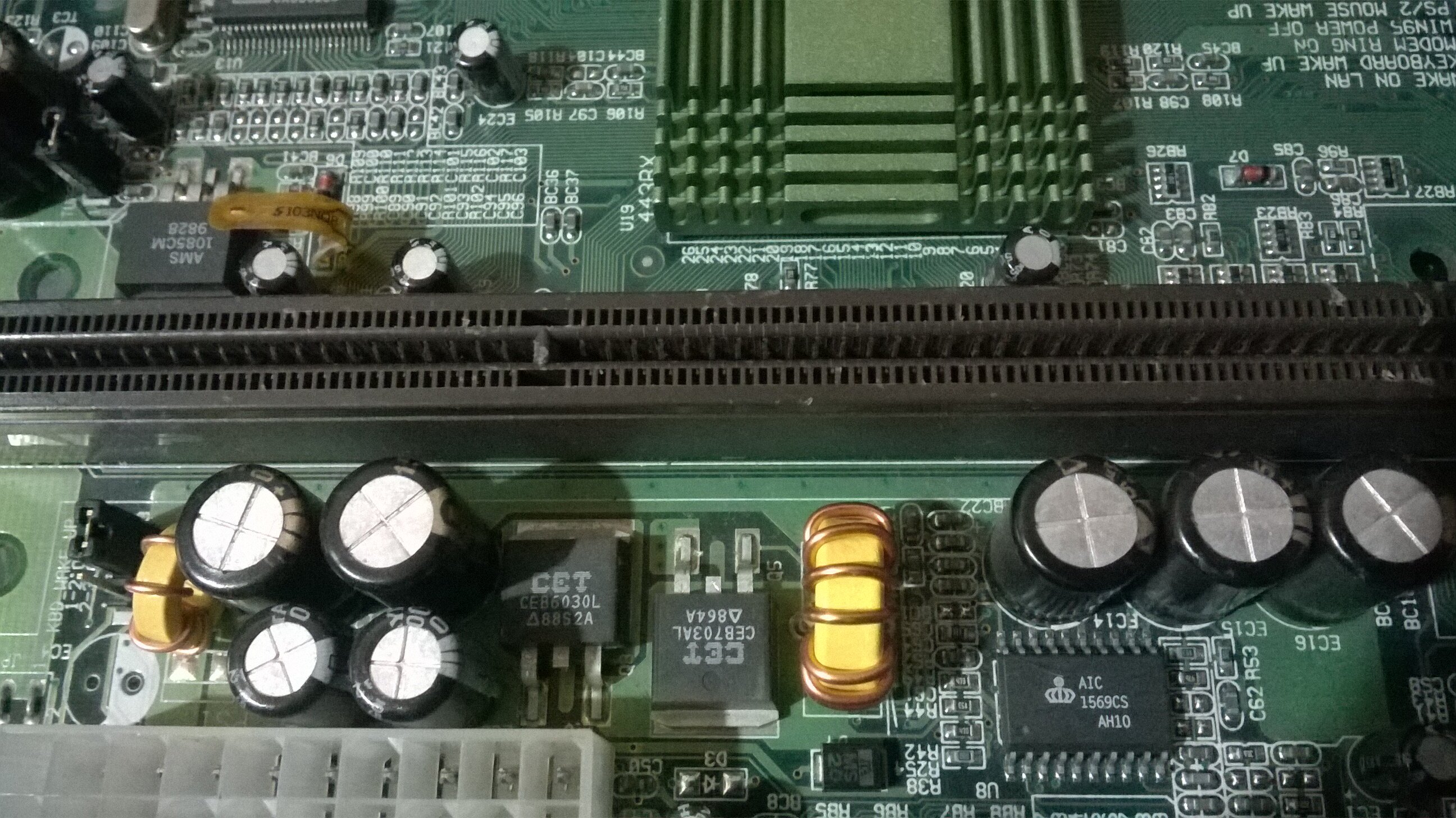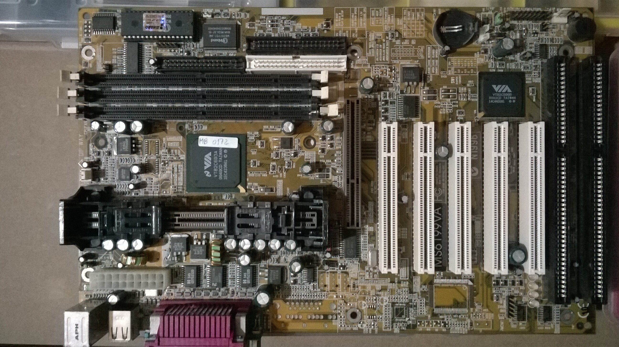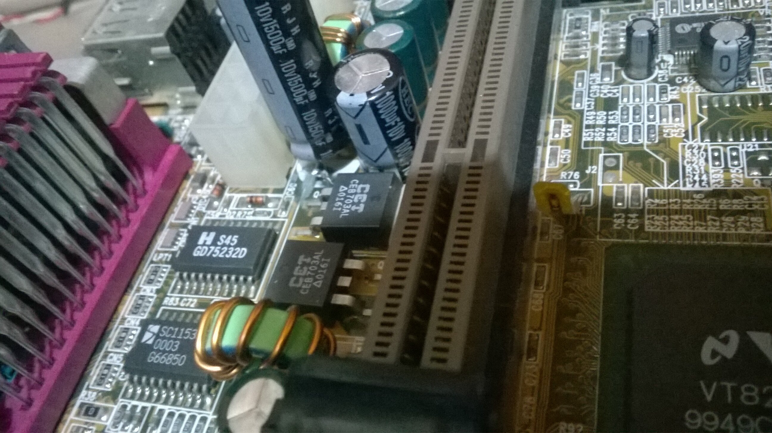 La socket 462 è ASRock K7VT4A PRO REV.1.02 con BIOS AMI, qui c'è da sostituire i condensatori elettrolitici da 3300uF 6.3V, essendo quattro in totale li cambio tutti, anche se quelli sicuramente da sostituire sono due o tre. Questa mi piacerebbe averla a posto, anche se ho già altre 462 vorrei fare qualcosa di diverso da quelli che ho, quindi pensavo ad un Sempron o un Duron al posto degli Athlon e Athlon XP, volendo ci sarebbe anche il Geode ma andrebbe meglio secondo me su una scheda con video integrato.