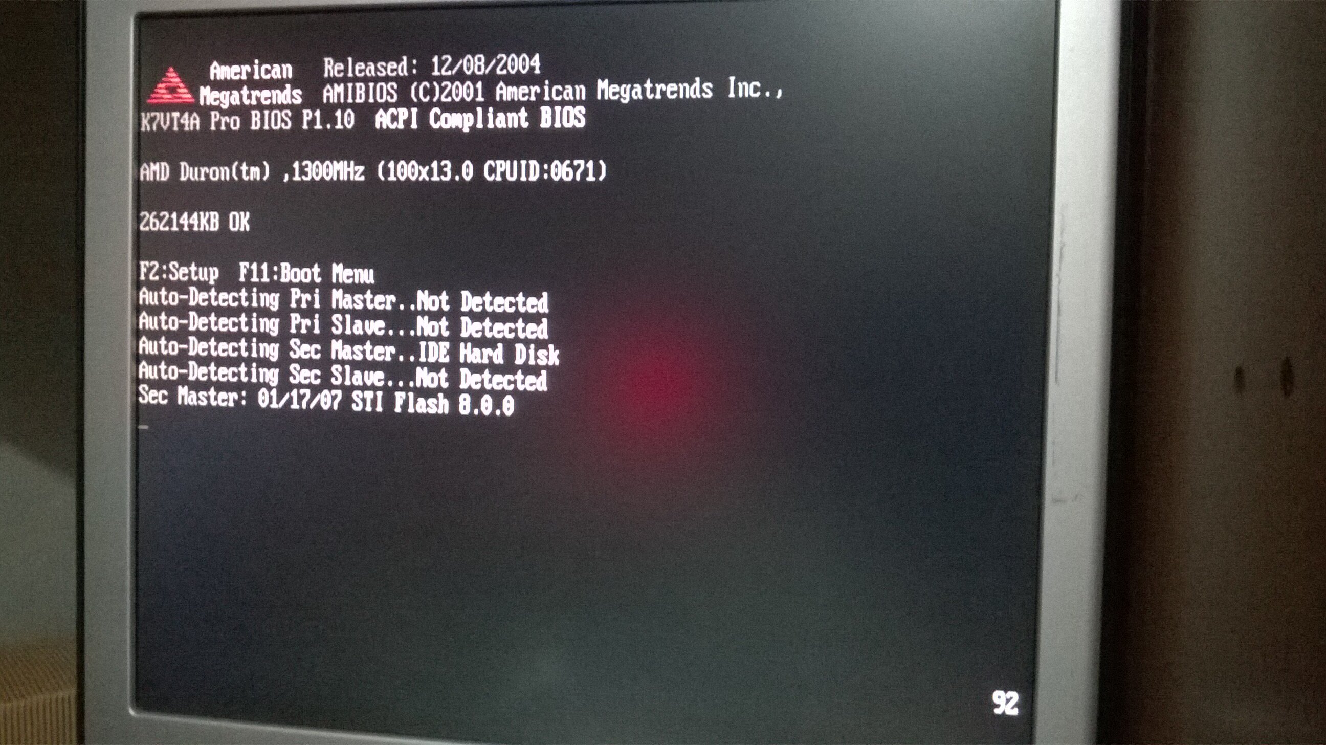 Decido di mettere qualcosa di più lento, tra i vari Duron che ho scelgo un 1300, che ha FSB200, e a questo punto si vedono apparire nel display vari codici, ma il display è nero??? Scopro che si è staccato il cavo di alimentazione, ricollegato ho a video la conferma che funziona!!!!!!icon_eek.gif 24.gif