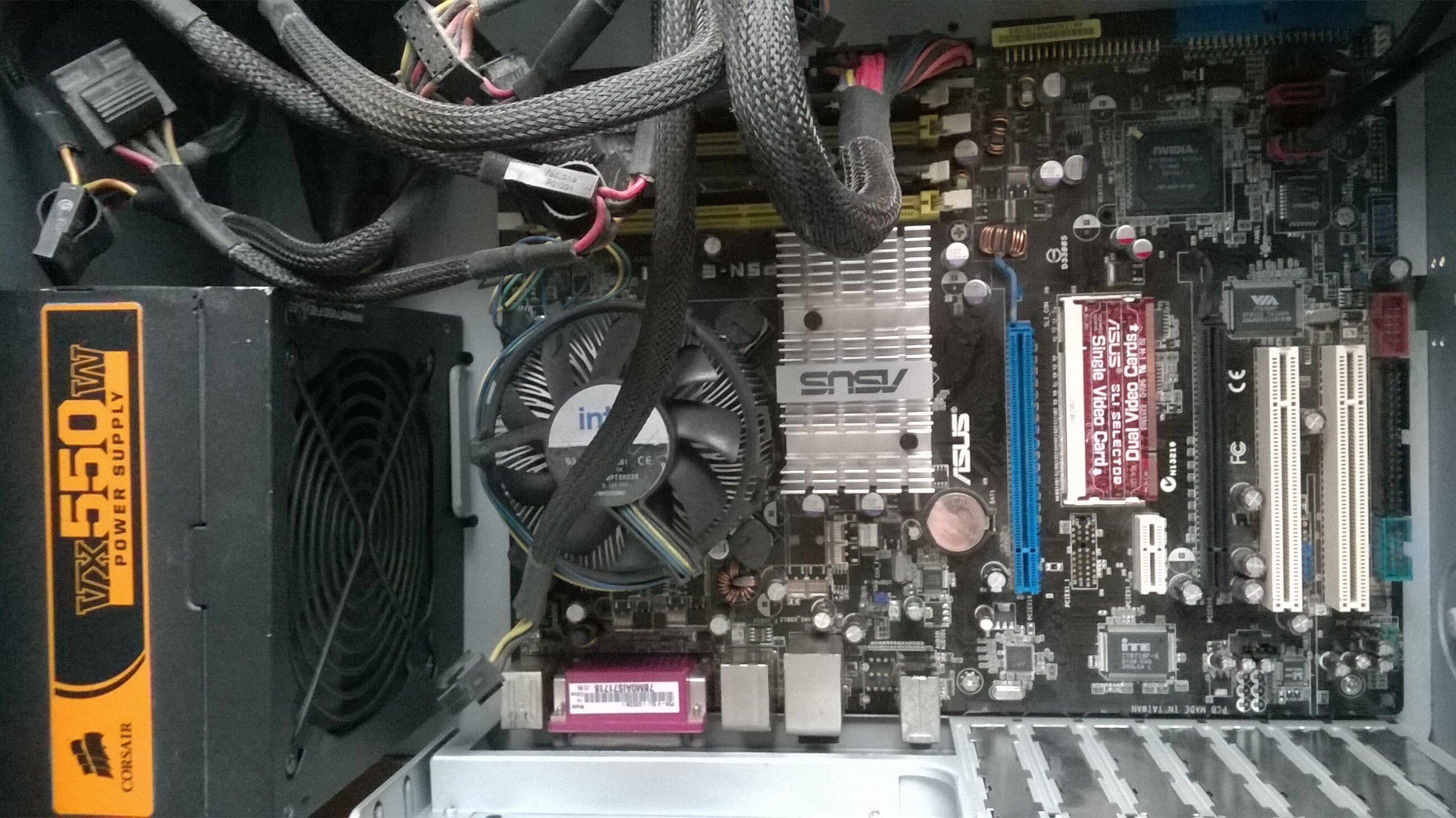 L'altra delle due ASUS 754, è una K8N-E Deluxe, è abbastanza completa come dotazione, ha 2SATA più altre 4RAID, sei porte audio, porte firewire, due uscite SPDIF uno ottico, poi il resto normale Lan integrata 4+4 usb. aveva un problema ad un condensatore che ho sostituito, era in zona chipset, ho messo dell'hw provvisorio, una CPU Sempron 2800 (1600MHz), RAM DDR400 da 128MB, mi manca il dissipatore per la CPU, appena ne recupero uno prova ad avviarla, sperando che funzioni.