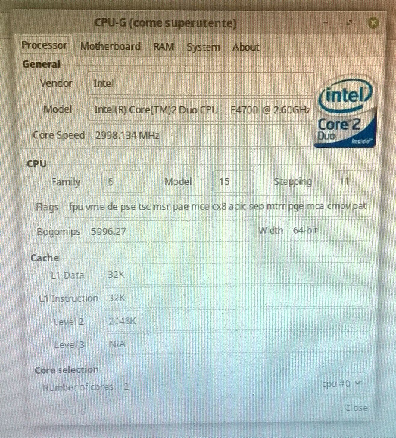 Partiamo dal PC Linux, ancora un cambio di CPU, ricordo che quella di partenza era un P4 da 3.0GHz e 1MB di cache (S.775), lo step successivo è stato un E2180 da 2.0GHz, poi vari Core 2 Duo, un 4400 poi un E4600, infine l'ultimo arrivato l'E4700 da 2.6GHz, ovviamente non contento ho alzato l'FSB da 200 a 230 e adesso l'ho alzato a 233, per capirci meglio è come avere 933MHz invece degli 800MHz standard. Non avendo voglia di rimettere le CPU più lente ho eseguito a varie frequenze delle prove con CPU-G, volevo capire se i Bogomips erano differenti alzando la frequenza, ed in effetti è così, sono riuscito a superare i 6000 andando oltre i 3.0GHz, penso sia possibile salire ancora di frequenza ma bisogna portare l'FSB a 1066 per ottenere 3.47GHz, bisogna vedere se parte a VCore standard, potrebbe farlo ma penso occorra fare una mod alla CPU per farla riconoscere correttamente, in modo che le altre frequenze vadano a valori standard, e non vadano fuori specifica.