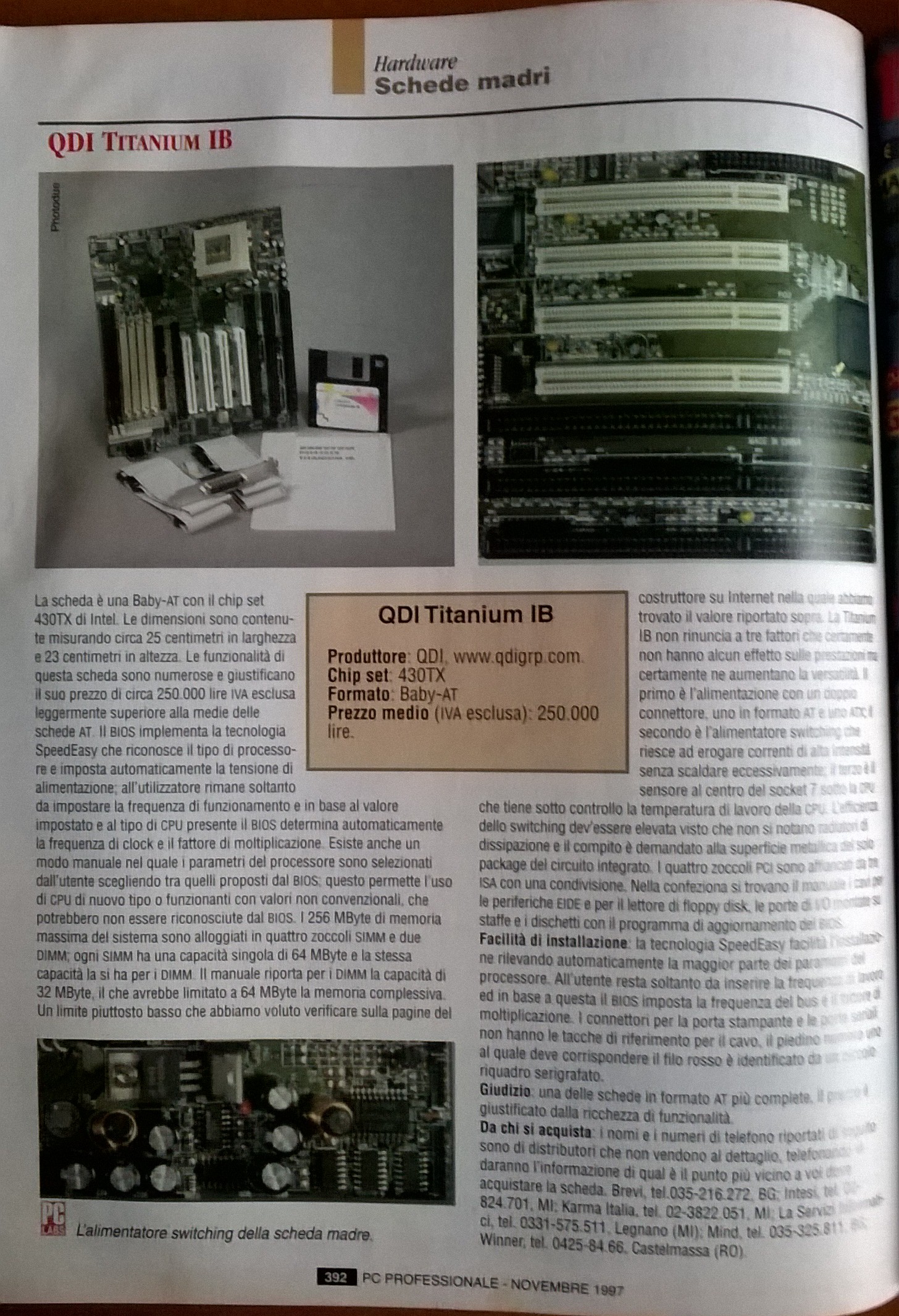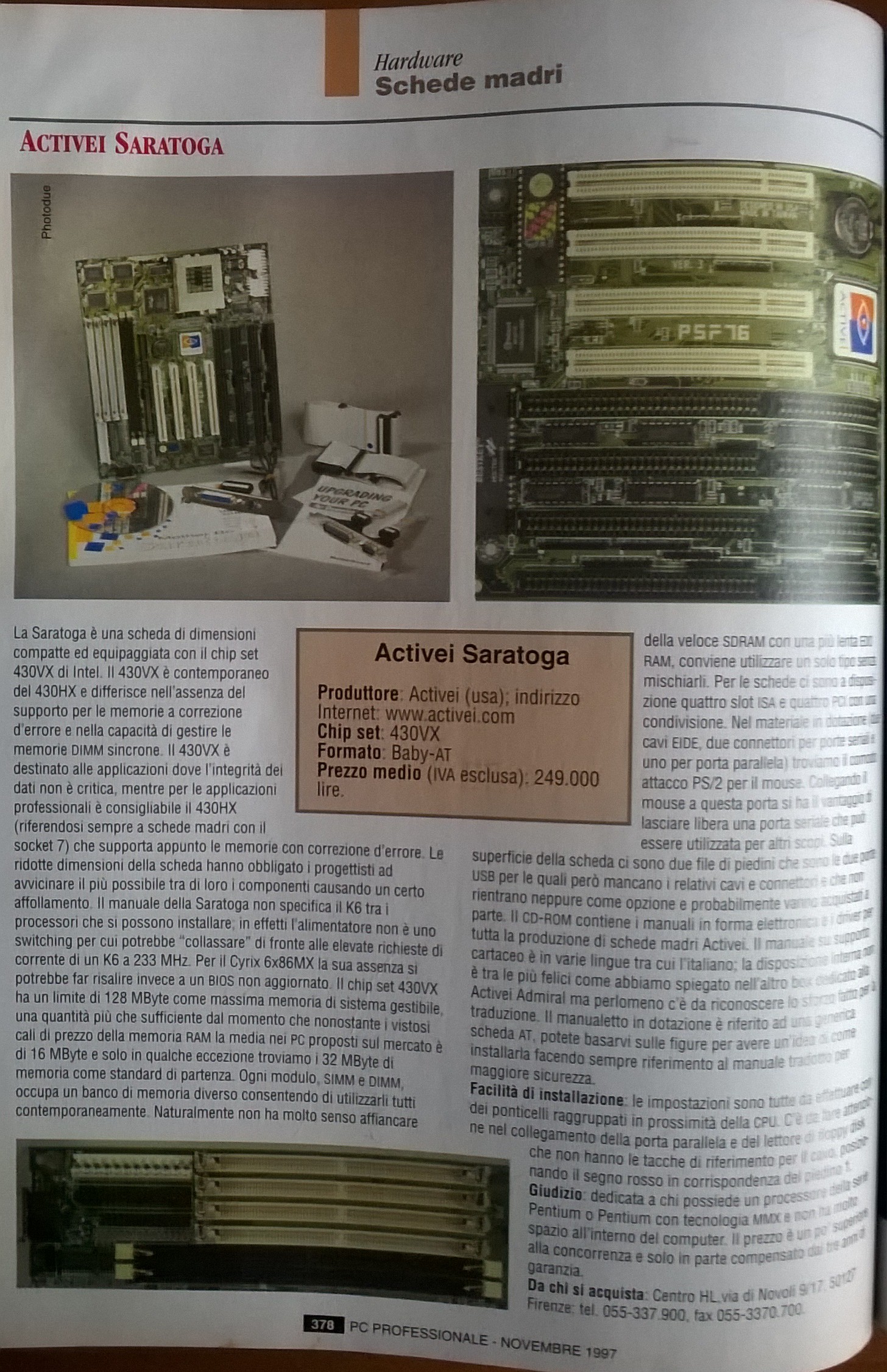 Prego, in verità piacciono molto anche a me, e di quelle vecchie riviste ne ho ancora da recuperare parecchie, alcune sono forse più vecchie, comunque solitamente le prove che facevano, erano di PC completi, ecco in quel caso era difficile trovare delle foto della scheda madre, al limite c'era una foto del PC aperto, ma se aveva parecchie schede installate, non è che si potesse vedere molto.