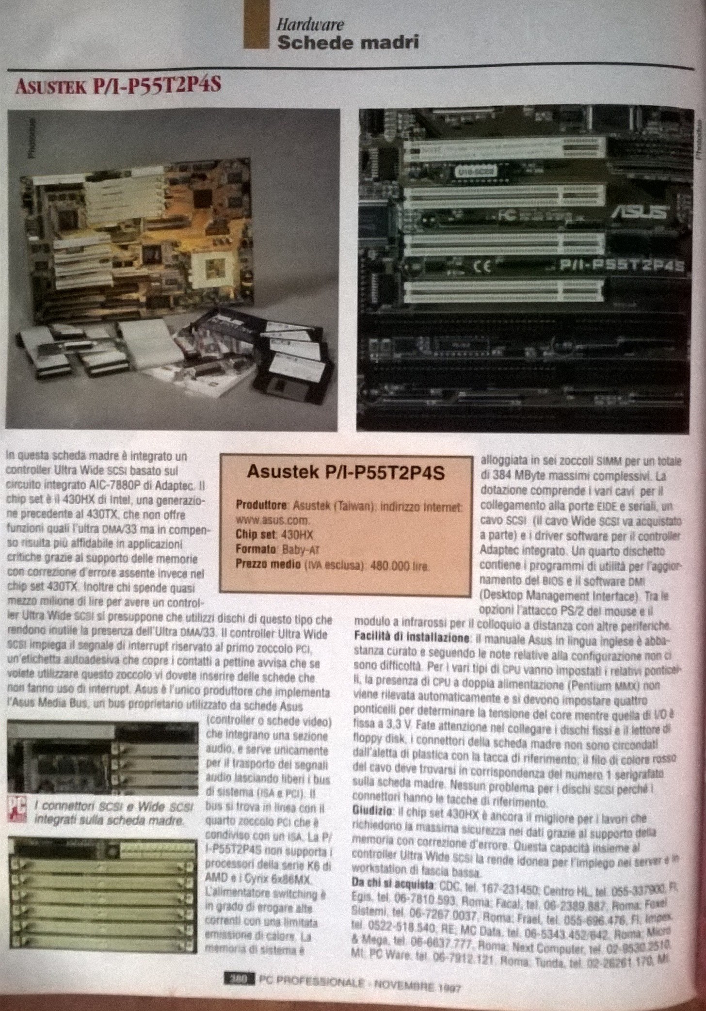 Addirittura con la cifra spesa all'epoca per comprare una Asus P55T2P4S (circa 600 mila lire IVA compresa), al giorno d'oggi si può acquistare un intero PC nuovo di fascia medio-bassa!! ?