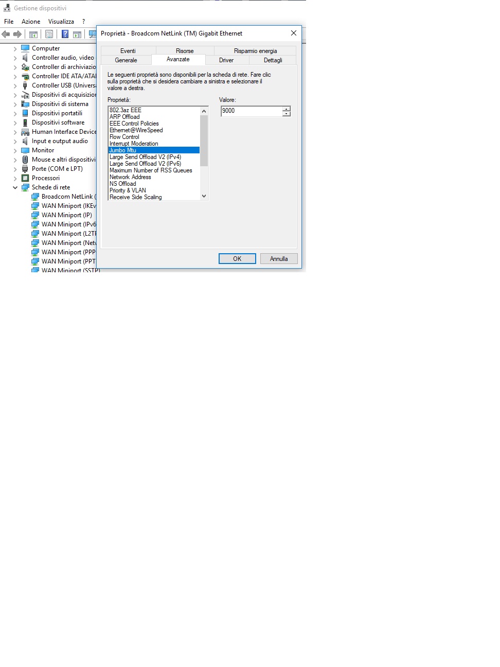 Se qualcuno potesse dirmi come configurare al meglio le opzioni avanzate potrei sperare di migliorare sta connessione sul fisso.. In speed/duplex ho lasciato autonegotiation perchè non ci sta l'opzione 1000. E cmq il led del connettore lan è verde cioè la connessione è in effetti a un giga e anche in centro connessioni di rete mi dice che la scheda viaggia a 1000mbps, ovviamente nominali. In jumbo mtu ho messo 9000, il massimo, pensando di avere così migliore ampiezza di pacchetti ricevuti.