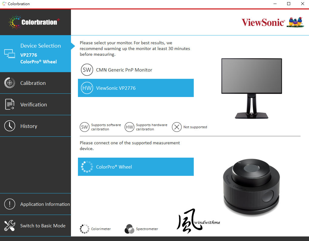 The other software included is Colorbration+, the main uses of which concern hardware color calibration, information about the color gamut, and calibration profiles. Together with its high-end ColorPro Wheel calibrator, the VP2776 display can maintain consistent and accurate color for long durations. Options for Basic and Advanced Mode are shown upon startup. Advanced Mode is shown below.