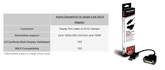 TUL Corporation, produttore leader di schede grafiche AMD , ha annunciato un adattatore per rendere la tecnologia Eyefinity ancora più fruibile. La PowerColor Active DisplayPort single-link DVI -D , consente il multi-display con 3 monitor DVI.