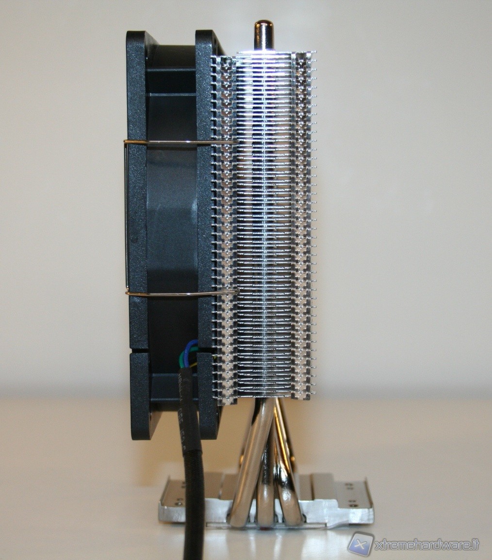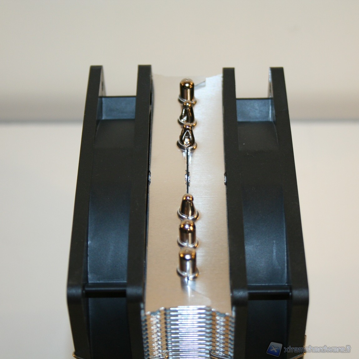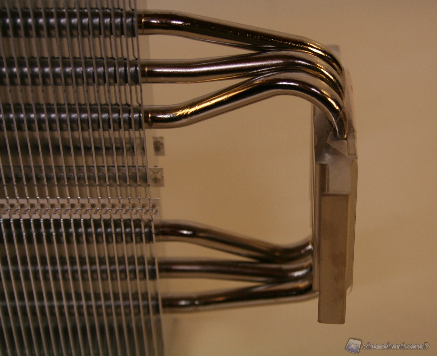 Il dissipatore presenta tre heatpipe aventi la classica struttura ad U, con un diametro di sei millimetri. La superficie dissipante è discreta e il dissipatore si presenta con la classica conformazione a singola torre; ci sono però degli elementi interessanti: