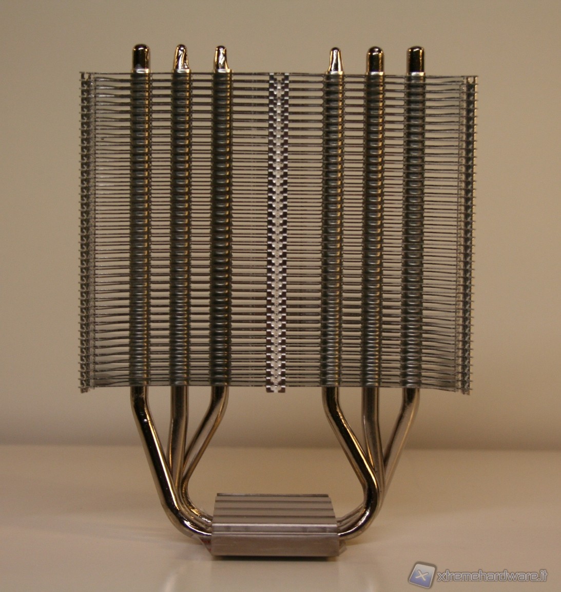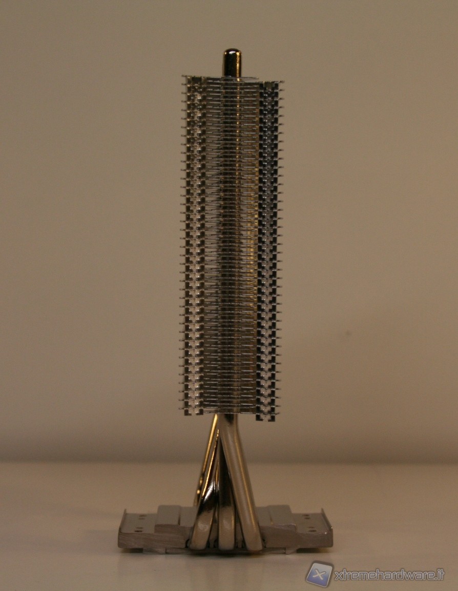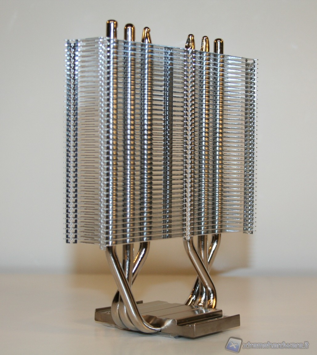 Il dissipatore presenta tre heatpipe aventi la classica struttura ad U, con un diametro di sei millimetri. La superficie dissipante è discreta e il dissipatore si presenta con la classica conformazione a singola torre; ci sono però degli elementi interessanti: