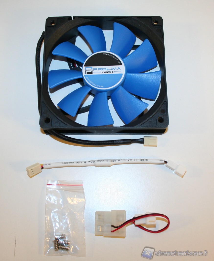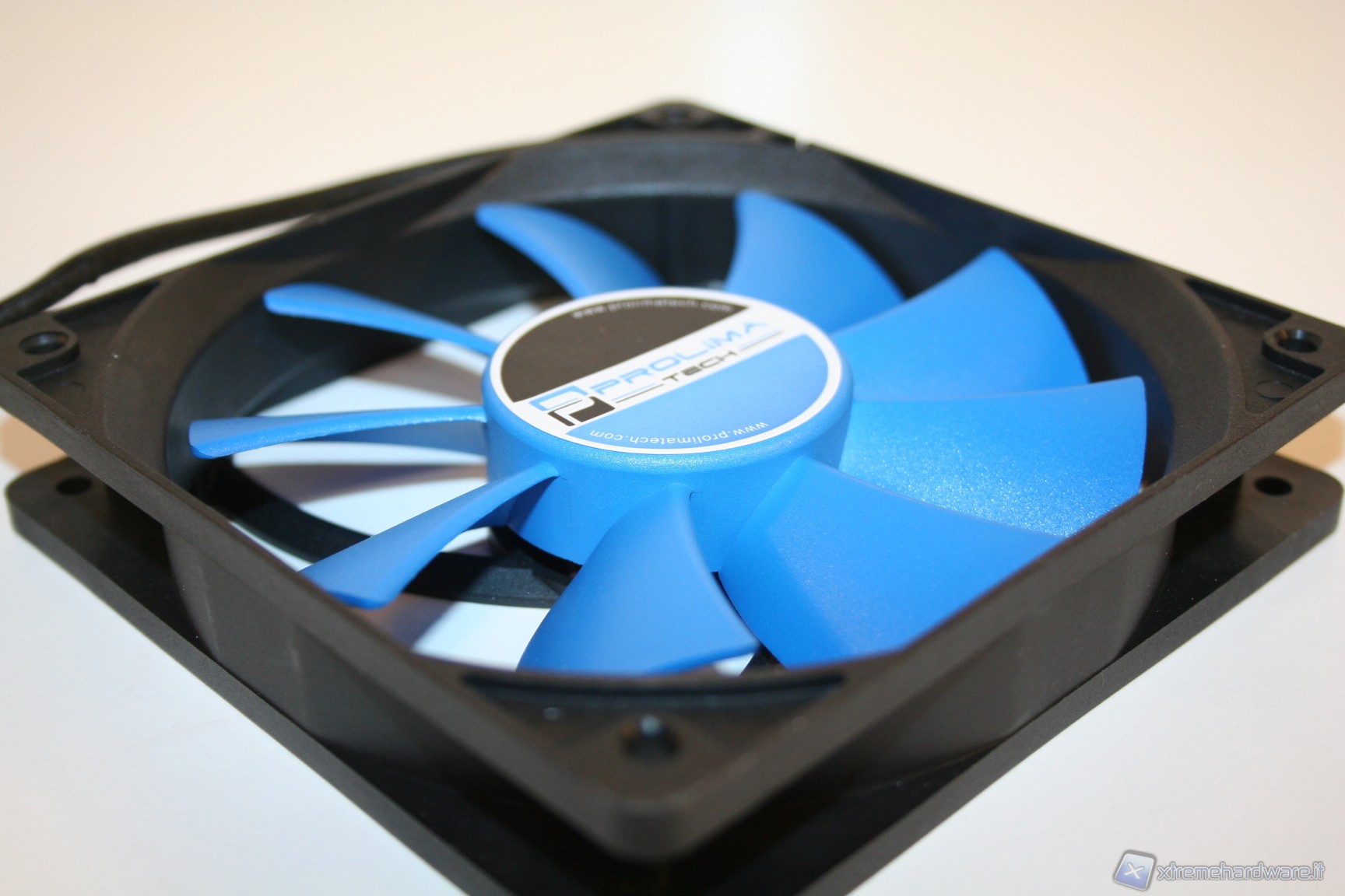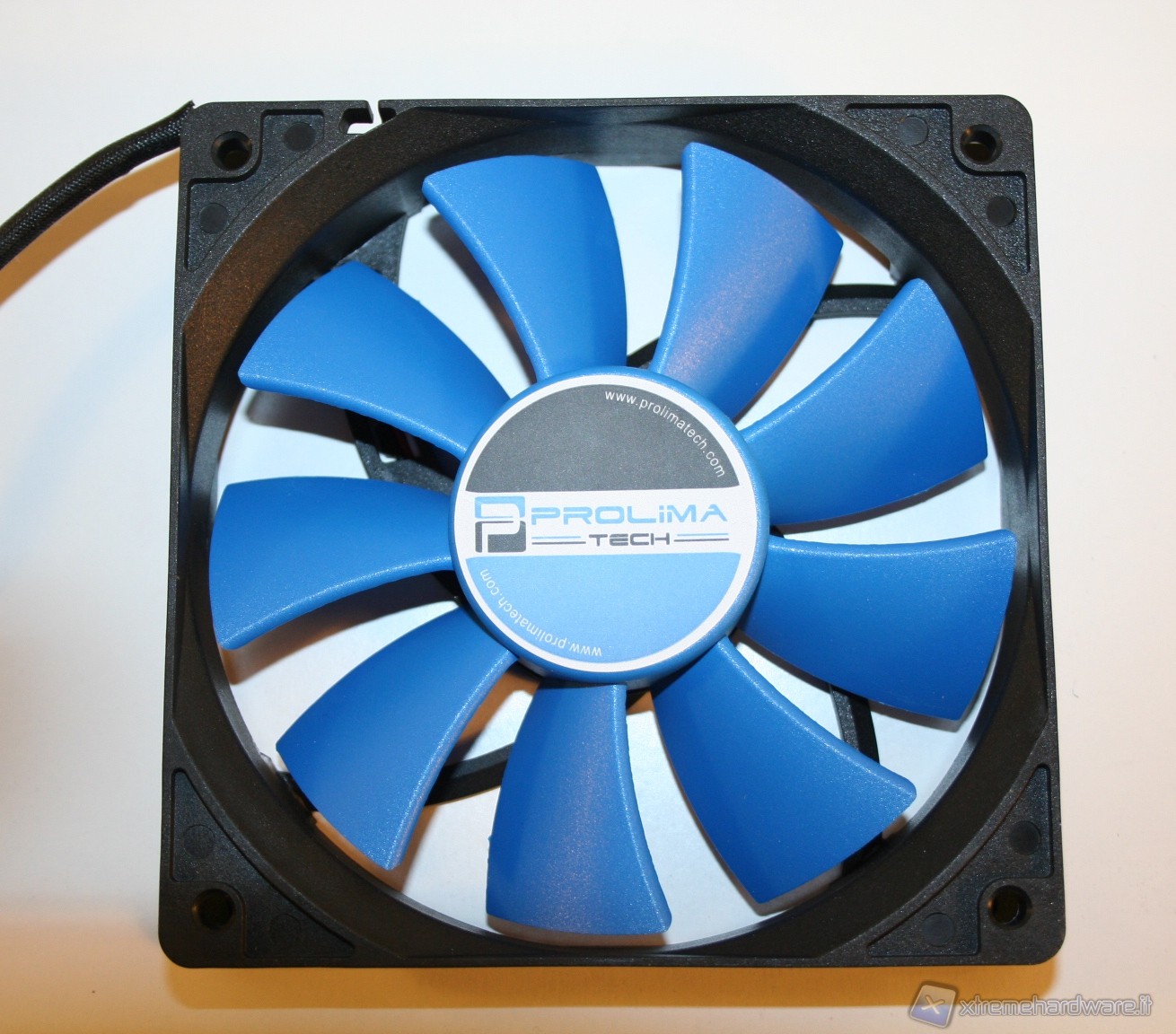 La ventola è di buona fattura; non si tratta della “Blue Vortex 12”, ma le prestazioni sono buone nel complesso. La struttura in ABS conferisce un’eccellente solidità strutturale, sebbene però la concezione sia classica, a nove pale e senza particolari accorgimenti funzionali. Lo spessore è standard, però siamo dinanzi ad un valore di CFM molto elevato per una ventola da 120mm; la rumorosità, è altrettanto elevata, ma data la natura PWM non ci saranno problemi e sarà possibile regolarne sia gli RPM che, di conseguenza, la rumorosità. Il consumo è pari a 2.16W per la serie standard quindi sarà possibile alimentarla da moltissimi fanbus in commercio, senza il minimo problema.