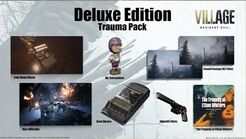 montaggio4 ea500-Resident Evil Village avrà una Digital Deluxe Edition (disponibile per tutte le piattaforme) che contiene la musica della safe room, Mr. Everywhere, una difficoltà aggiuntiva, il dispositivo di salvataggio, dei "found footage RE7 filters" e la tragedia di Ethan Winters. Non viene specificato a cosa servano questi oggetti, o cosa siano più nello specifico, ci viene solo detto che sono dei riferimenti a Resident Evil VII. Tutto questo viene chiamato il Trauma Pack.