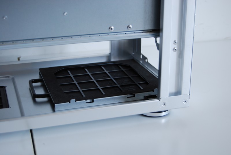 Molto interessante il piatto della motherboard che può essere estratto posteriormente dal case tramite due guide dotate di cuscinetti a sfera.