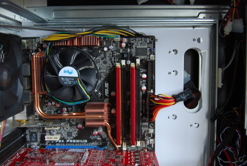 Poiché il connettore dell'alimentazione supplementare per la cpu potrebbe non essere abbastanza lungo da passare dietro al piatto della scheda madre per poi tornare indietro, CoolerMaster fornisce una piccola prolunga che permette di raggiungere il connettore sulla scheda madre agevolmente.