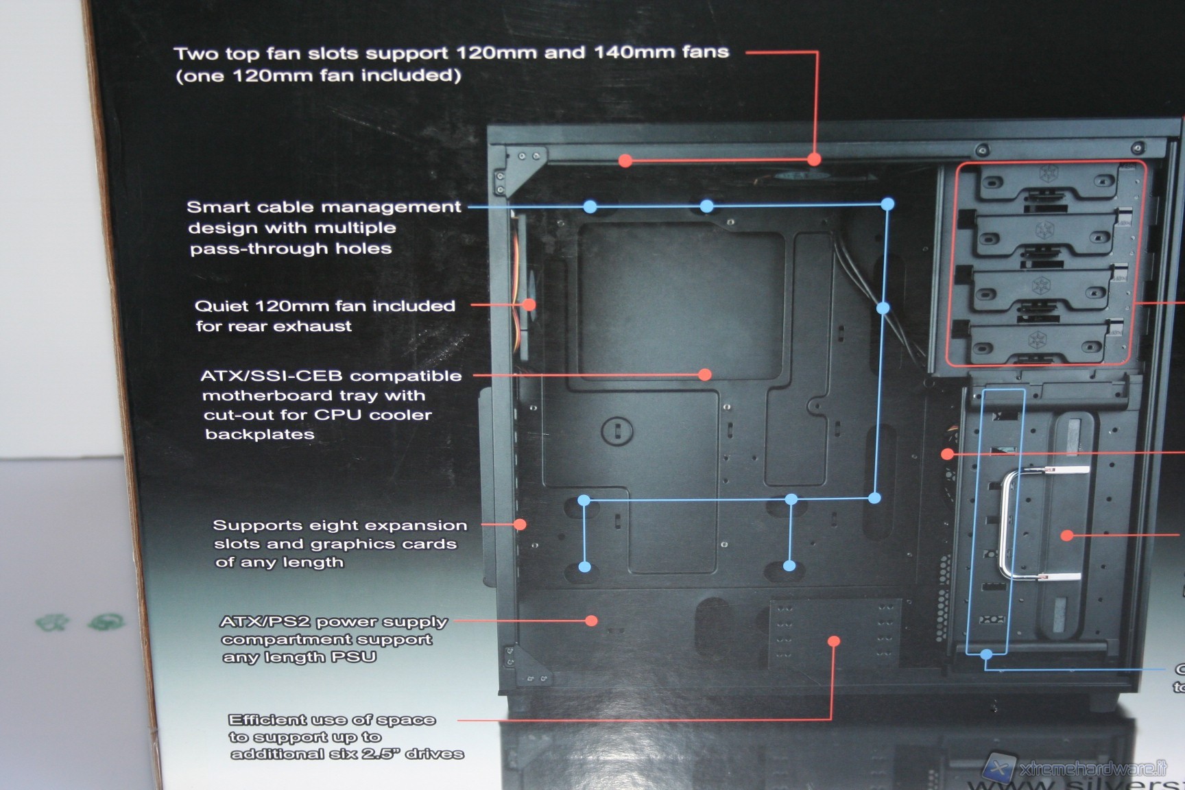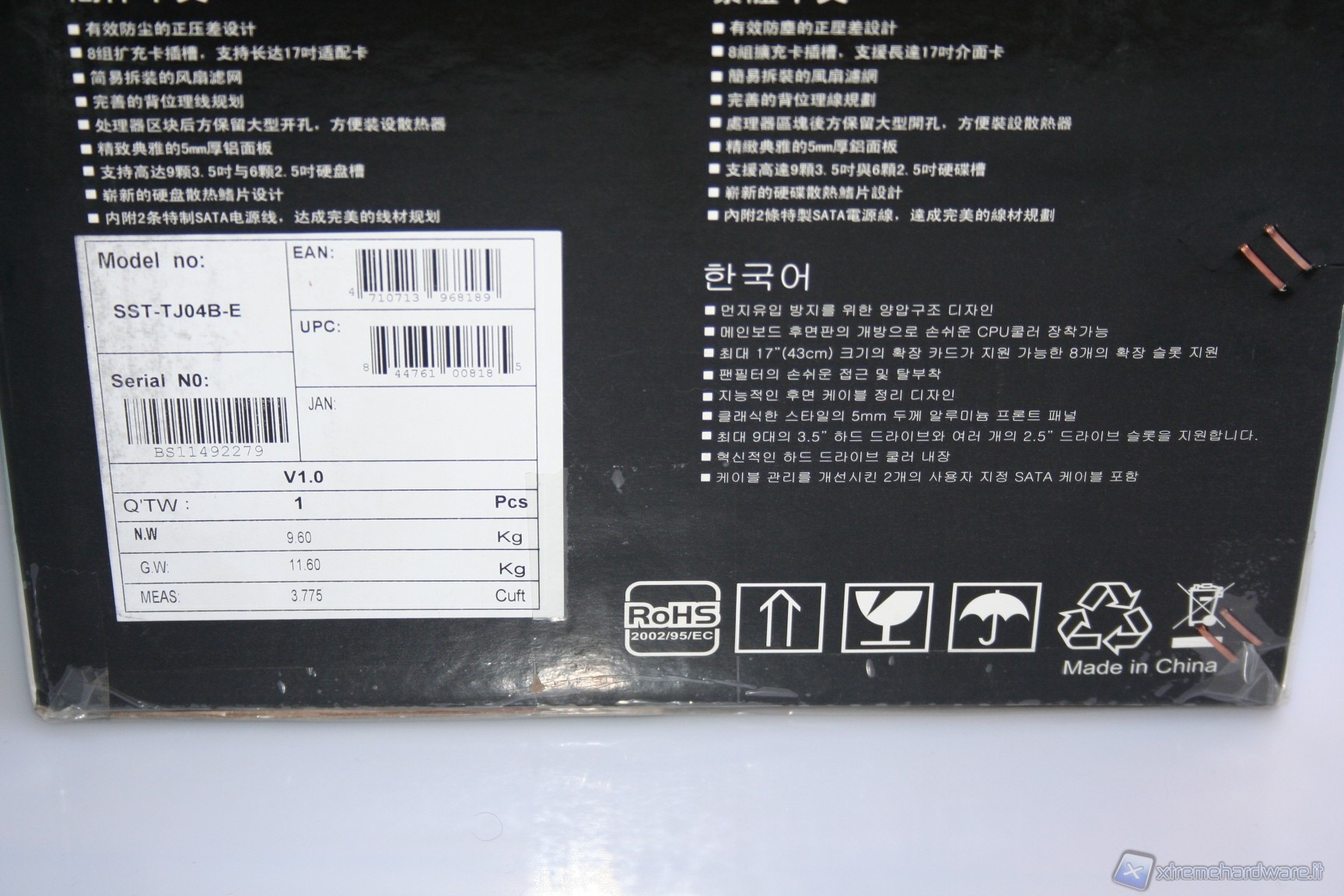 Il cabinet è stato imballato nel classico ed ottimo box SilverStone. Ottime le foto, molte le informazioni dettagliate e adeguata la descrizione dell’unità. All’interno il cabinet è al riparo da potenziali urti grazie a due gigantesche protezioni in un materiale qualitativamente migliore del classico polistirolo espanso, con un cartone protettivo esterno ed una grande busta di plastica contro graffi accidentali.