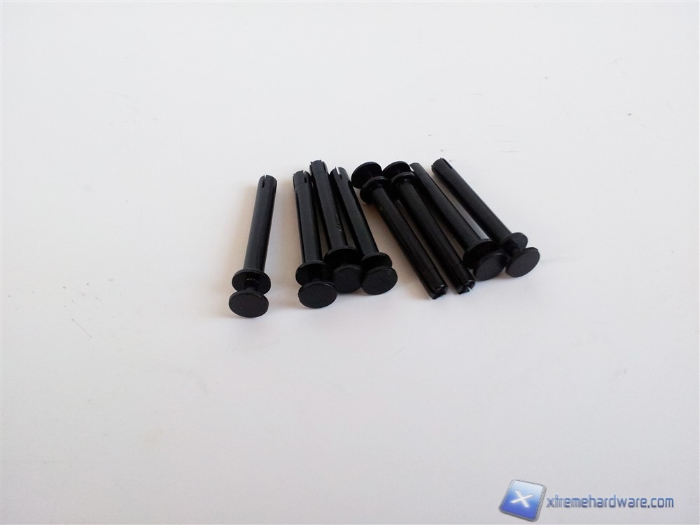 Ponendo la nostra attenzione sull'intelaiatura possiamo sin da subito capire la disposizione dei componenti, il case è inoltre completamente verniciato di nero così come i cavi provenienti dal pannello frontale e quelli delle ventole. All'interno del case troveremo inoltre una busta contenente viterie e accessori vari tra cui delle fascette per i cavi (anch'esse nere), una coppia di slitte per il montaggio di supporti di memorizzazione e lo speaker. Molto utile risulta l'adattatore per il montaggio dei distanziali della mainboard che permetterà di non rovinarli utilizzando una pinza per stringerli.