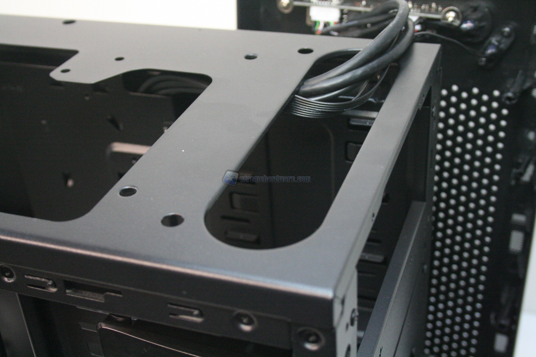 La configurazione è classica, quindi non ci dilunghiamo in descrizioni inutili. Da menzionare la presenza di due ottimi fori passa-tubazioni a liquido, nella parte destra. Nella parte superiore possiamo osservare il foro per la rimozione del pannello superiore. E’ un peccato che non possa montare ventole posteriori da 140mm, quindi consigliamo di inserire questa possibilità nelle prossime revisioni.