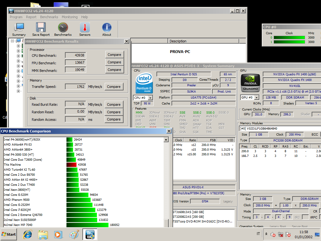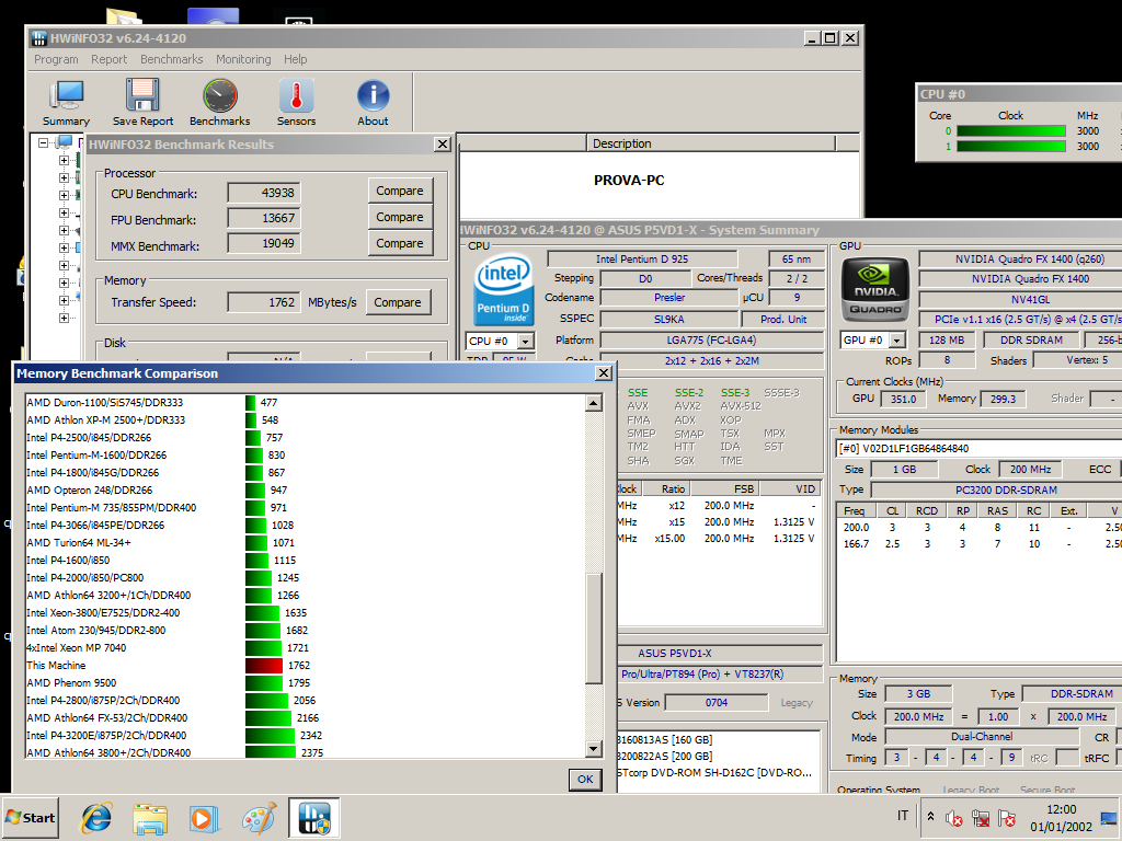 Ecco alcuni bench sul Pentium 4 in firma con l'ultima versione di Hwinfo32, utilizzando come sistema operativo Windows 7 SP1: