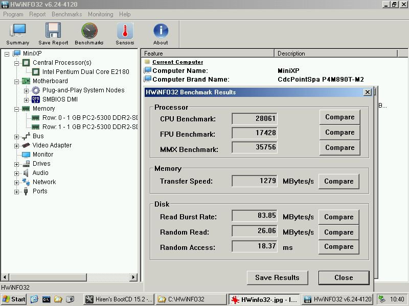 Ecco i bench del PC Linux in firma, per gli SPD delle RAM ho usato una versione precedente all'1.76 visto che da li non li rilevava, purtroppo non so se dipende dal Mini-XP la CPU va a singolo core e al massimo.