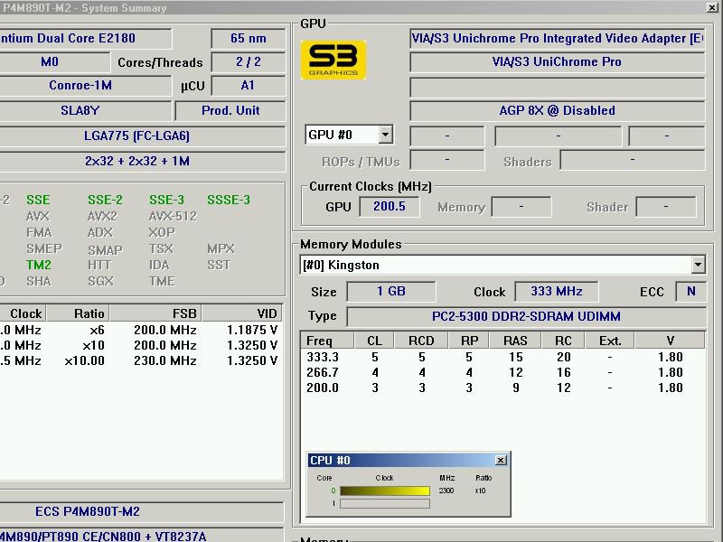 Nell'uso non impegnativo non ha nessun problema, i problemi vengono da quello che sono riuscito a capire (forse) dalle RAM, infatti in un bench di Sandra è andato in crash proprio nel bench delle memorie, dalle immagini che metto si vede che non supportano i 333MHz (essendo 266), notavo il tRAS che da CPU-Z è 7 mentre da BIOS è 6, questo forse è un problema?😕/emoticons/confused.png.1268e67724eeff1d2e5126476e482704.png" title="😕" width="16" >