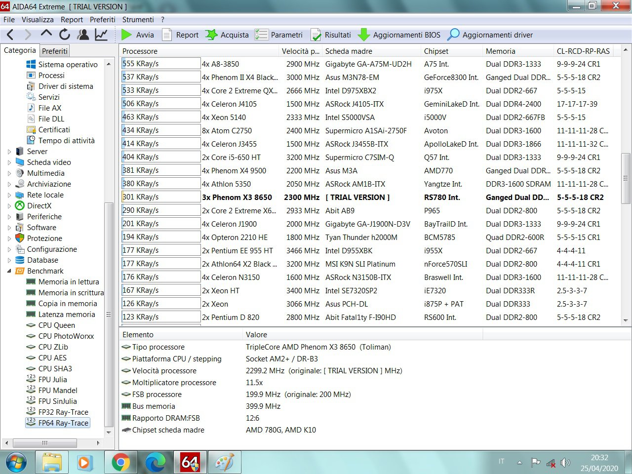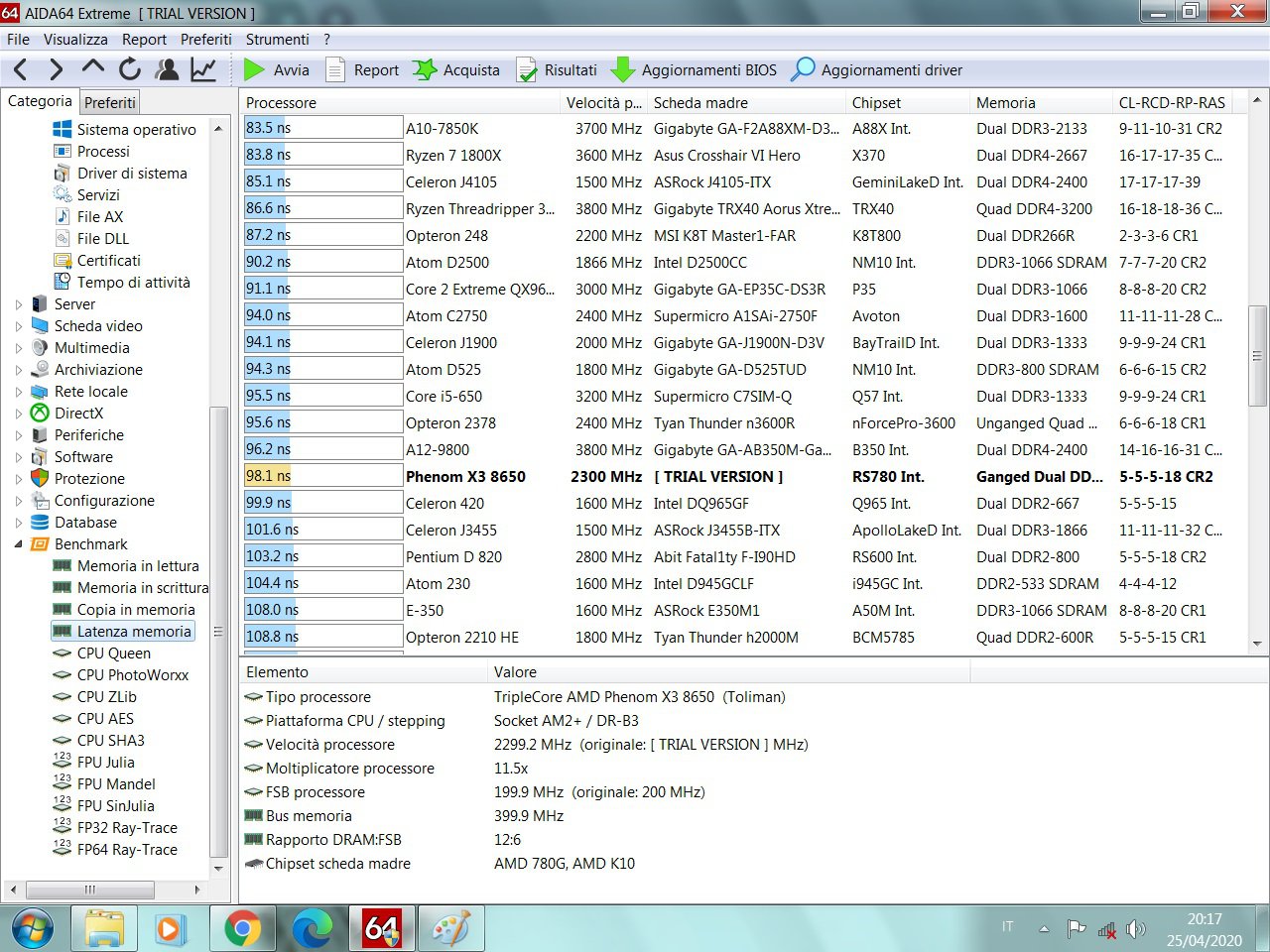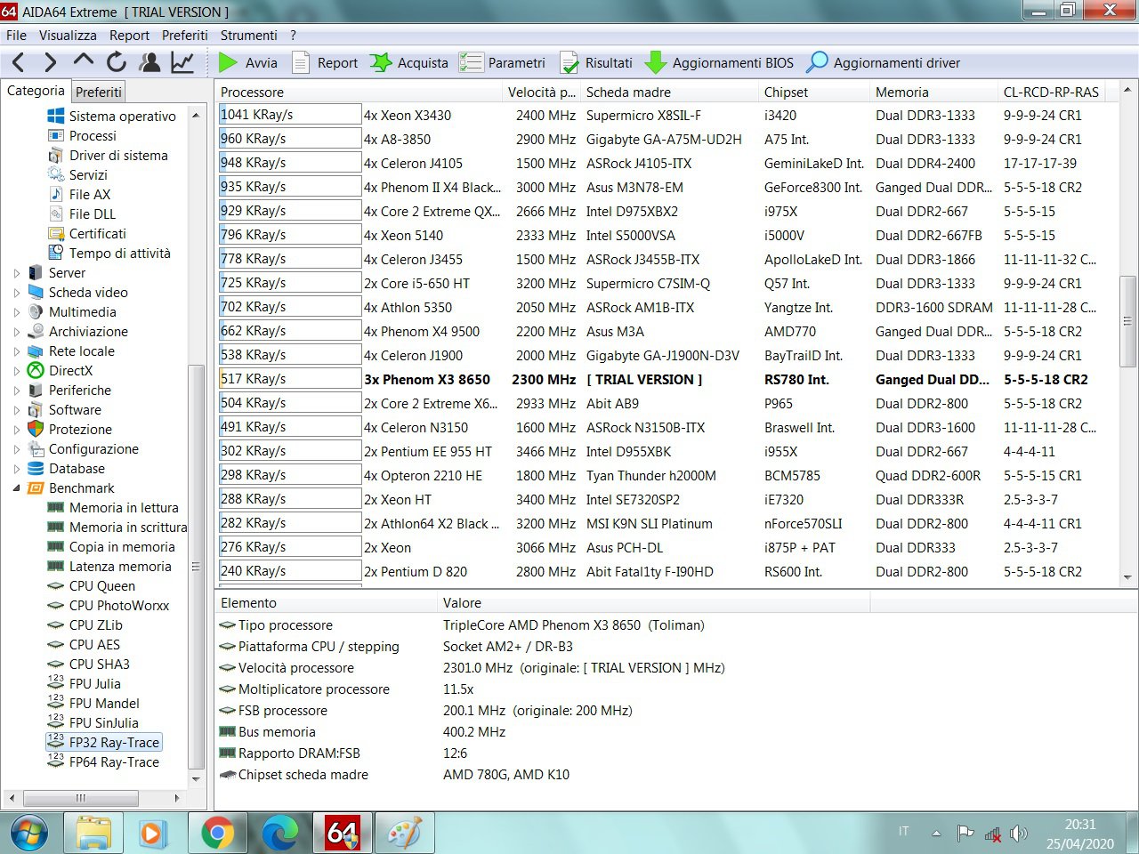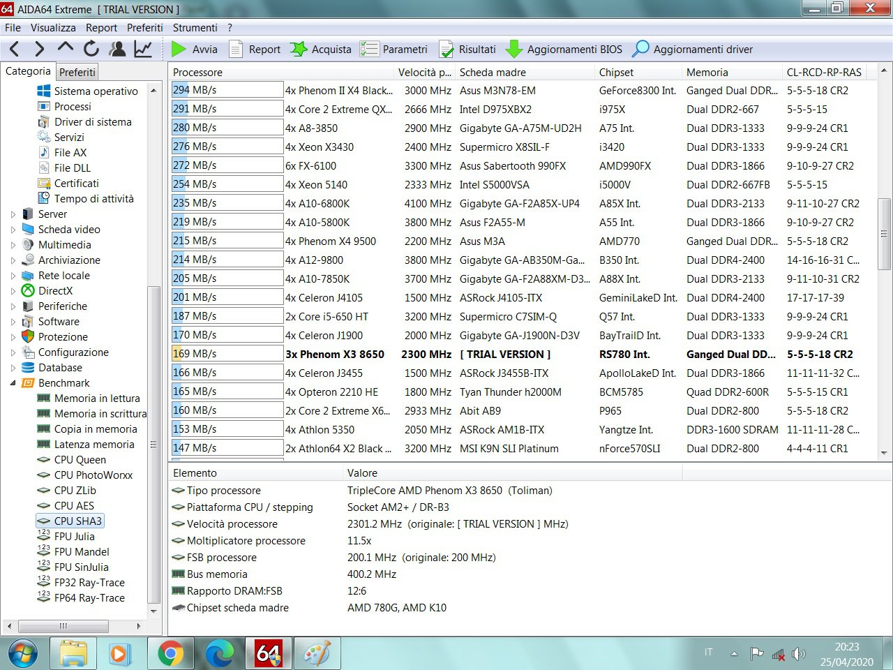Ho scaricato nel PM questo programma di diagnostica del sistema, ver.6.25.5400 è una versione di valutazione (30gg), l'ho installato sul PC Internet e ho fatto i bench, all'interno dei bench c'è un elenco abbastanza completo di varie CPU dai socket 7 a CPU che al momento pochi possono permettersi, ma magari tra 10 anni chissà magari diventano accessibili. Metto le immagini, sono un po' tante ma se volete, la prossima volta metto un link e le immagini le metto da un'altra parte.