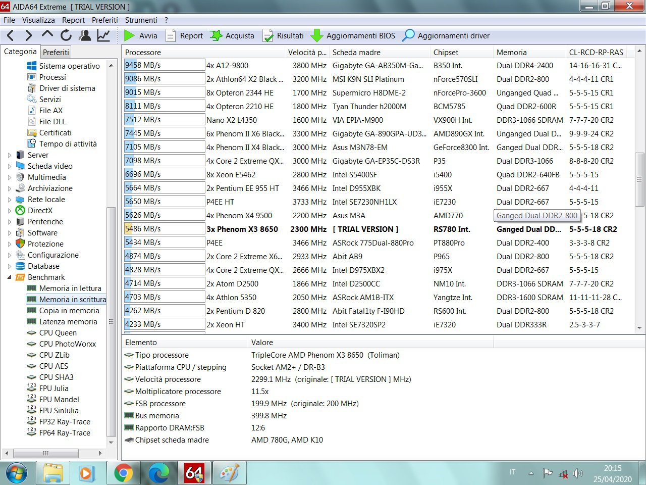 Notavo in HWinfo32 che i valori più strani sono quelli del MMX, con CPU come i Duron e altri che fanno punteggi alti oppure è il P4 che li fa bassi.