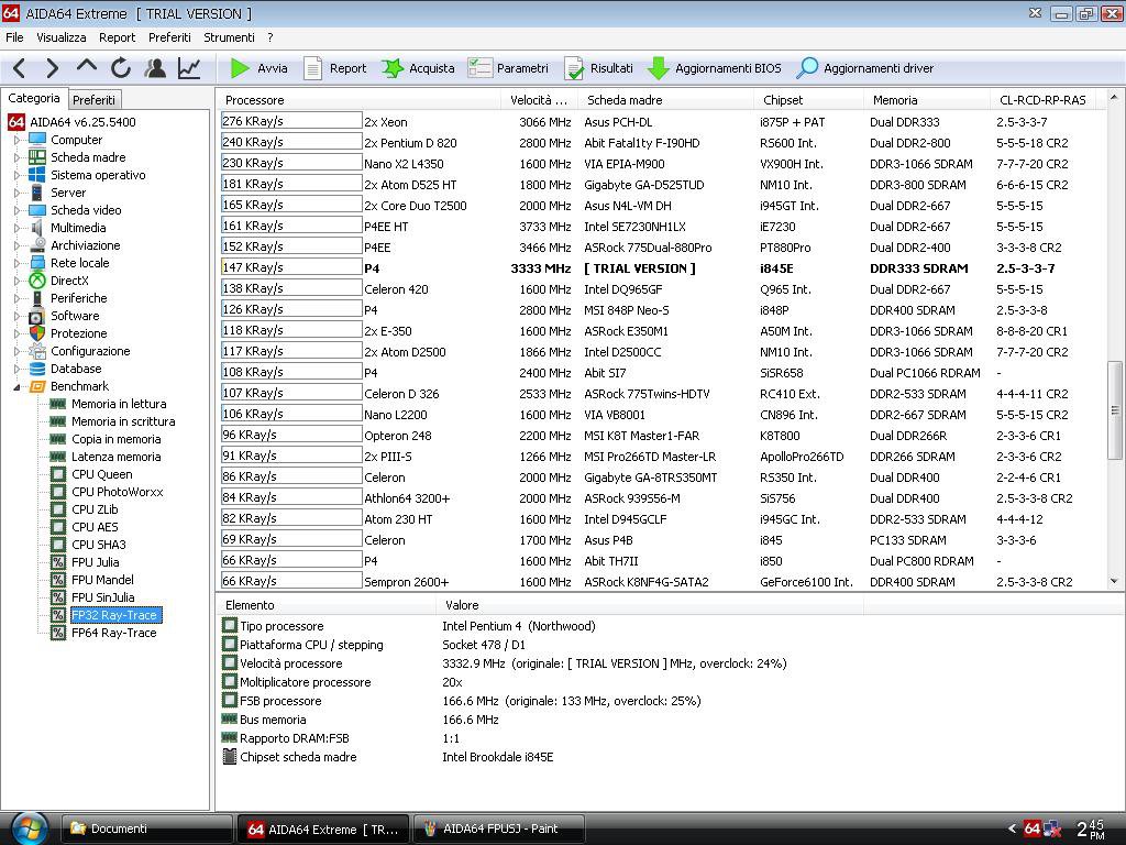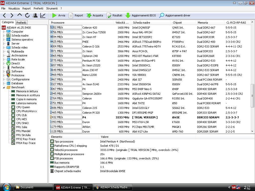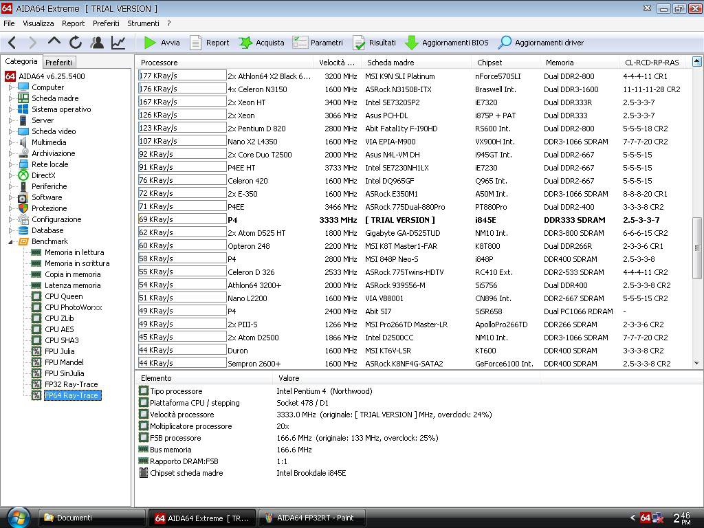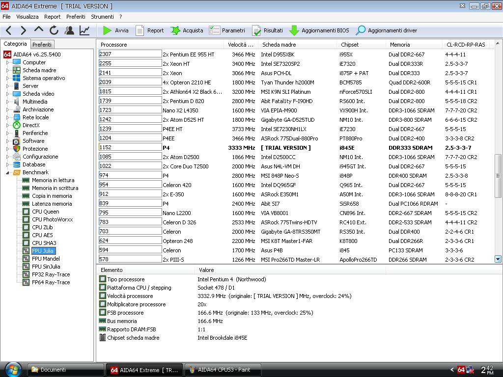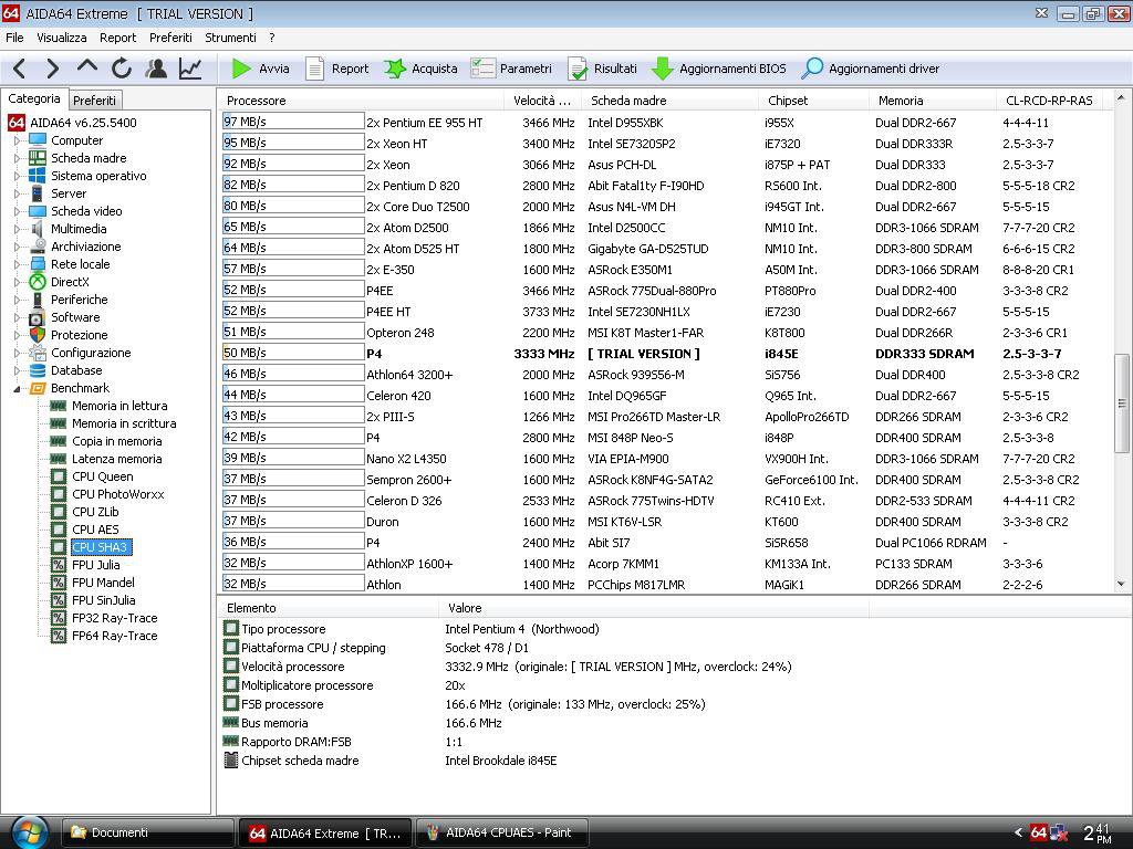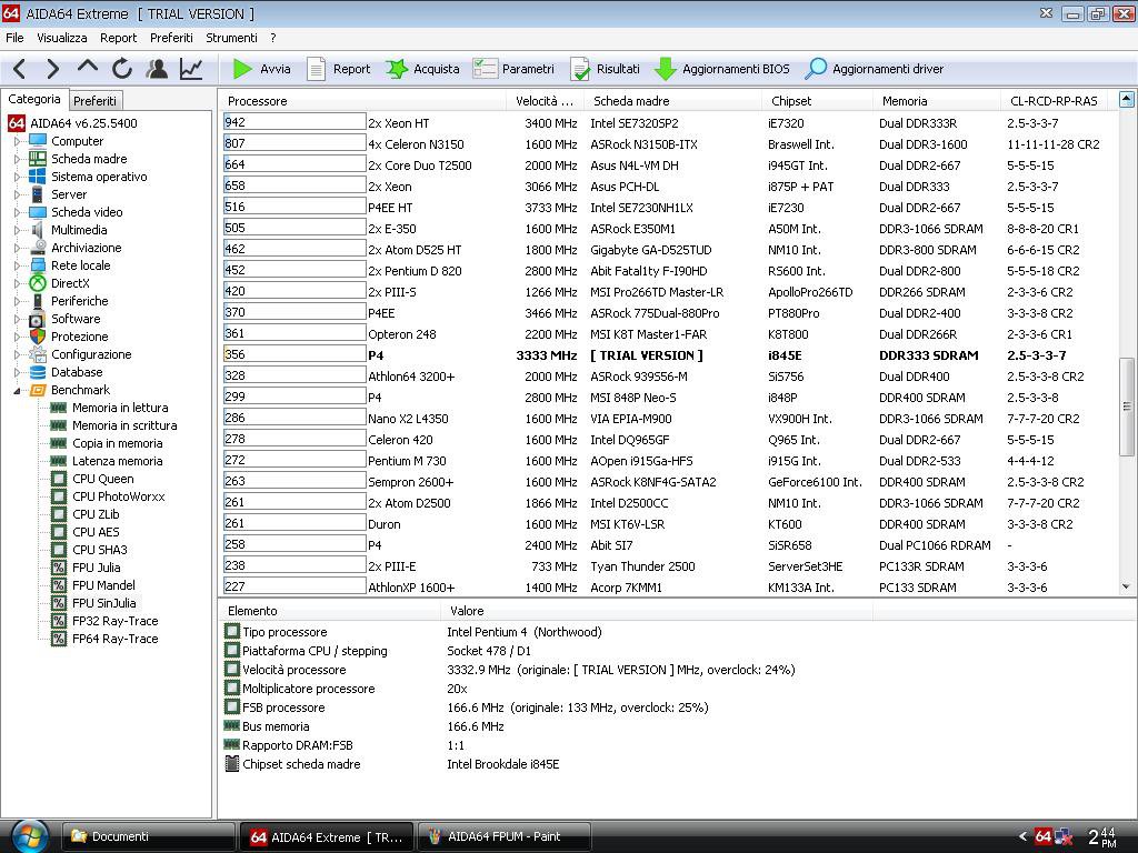 Ho scaricato nel PM questo programma di diagnostica del sistema, ver.6.25.5400 è una versione di valutazione (30gg), l'ho installato sul PC Internet e ho fatto i bench, all'interno dei bench c'è un elenco abbastanza completo di varie CPU dai socket 7 a CPU che al momento pochi possono permettersi, ma magari tra 10 anni chissà magari diventano accessibili. Metto le immagini, sono un po' tante ma se volete, la prossima volta metto un link e le immagini le metto da un'altra parte.