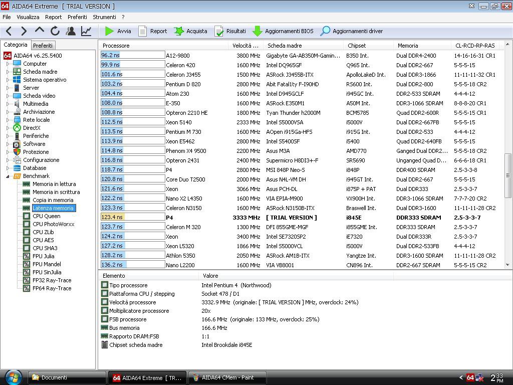 Ecco i bench dell'overclock del Pentium 4 2667/533, ho settato manualmente l'ASUS P4B533/Gold per ottenere una frequenza della CPU di 3333/667:cincin:/emoticons/toast.gif.5a798d050b99b4cd9e9d3b2b03101bd8.gif" title=":cincin:" width="60" >, corrispondente ad un overclock del 25%, cosi settato è abbastanza stabile, per migliorare la situazione vorrei provare a ricambiare le RAM con quelle da 333, se diventa 100% stabile a 3333 è una frequenza che consente un buon miglioramento (anche visibile) nell'uso del PC.