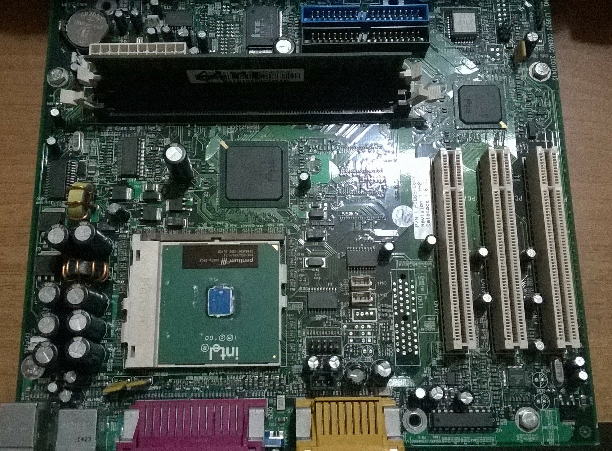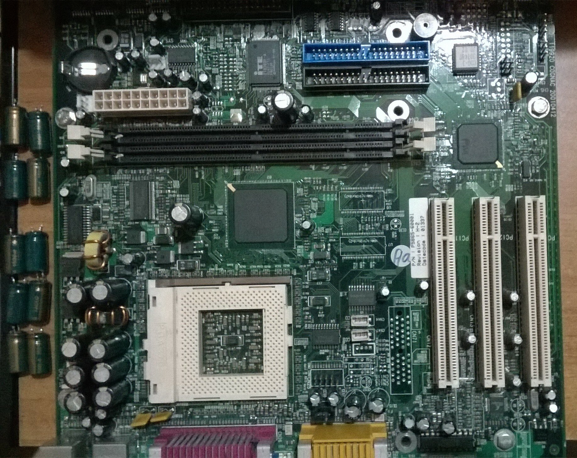 Ma sono arrivati i condensatori elettrolitici, e questi mi permetteranno la riparazione di alcune schede madri, la prima di queste è una HP Cognac REV. H-2, con chipset intel i810E, ovviamente c'è l'audio e il video integrato, e sono presenti tre slot PCI per l'espansione o l'aggiunta di schede, nel complesso è una scheda con una dotazione abbastanza completa, manca però la LAN, se occorre si può aggiungere una apposita scheda PCI.