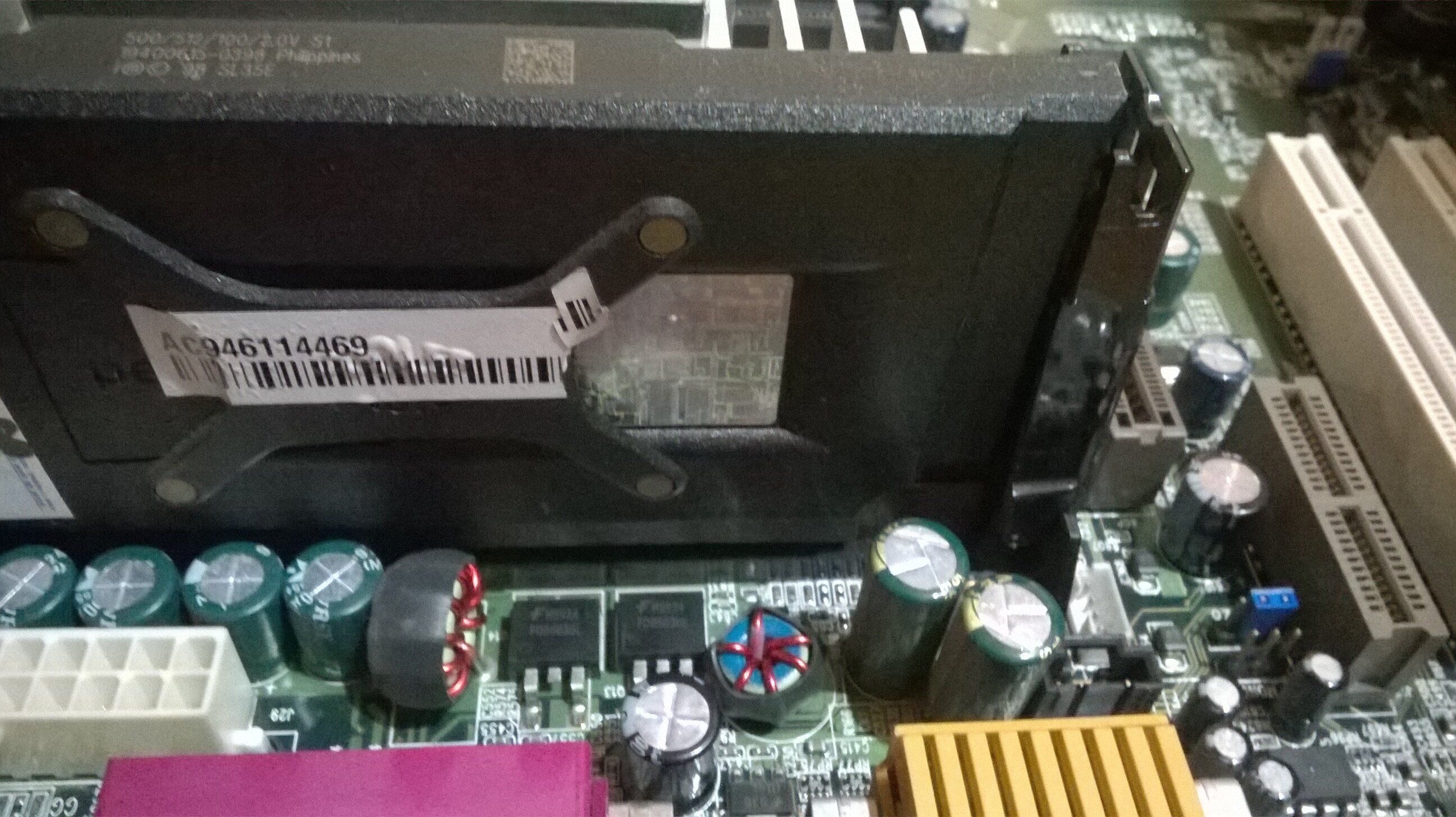 Inizio dalla ASRock 478, è una P4VT8+ è uguale a quella di cui avevo scritto qualche anno fa, ma la Rev. è 1.06 (invece di 1.04), bisogna trovare un SMD mancante nel retro e risaldarlo, e bisogna cambiare cinque condensatori da 3300uF 6.3V, sembra un difetto comune per queste MB, ma di solito basta cambiarli con altri di qualità migliore per far tornare a funzionare la scheda, sempre che non ci sia altro di guasto.