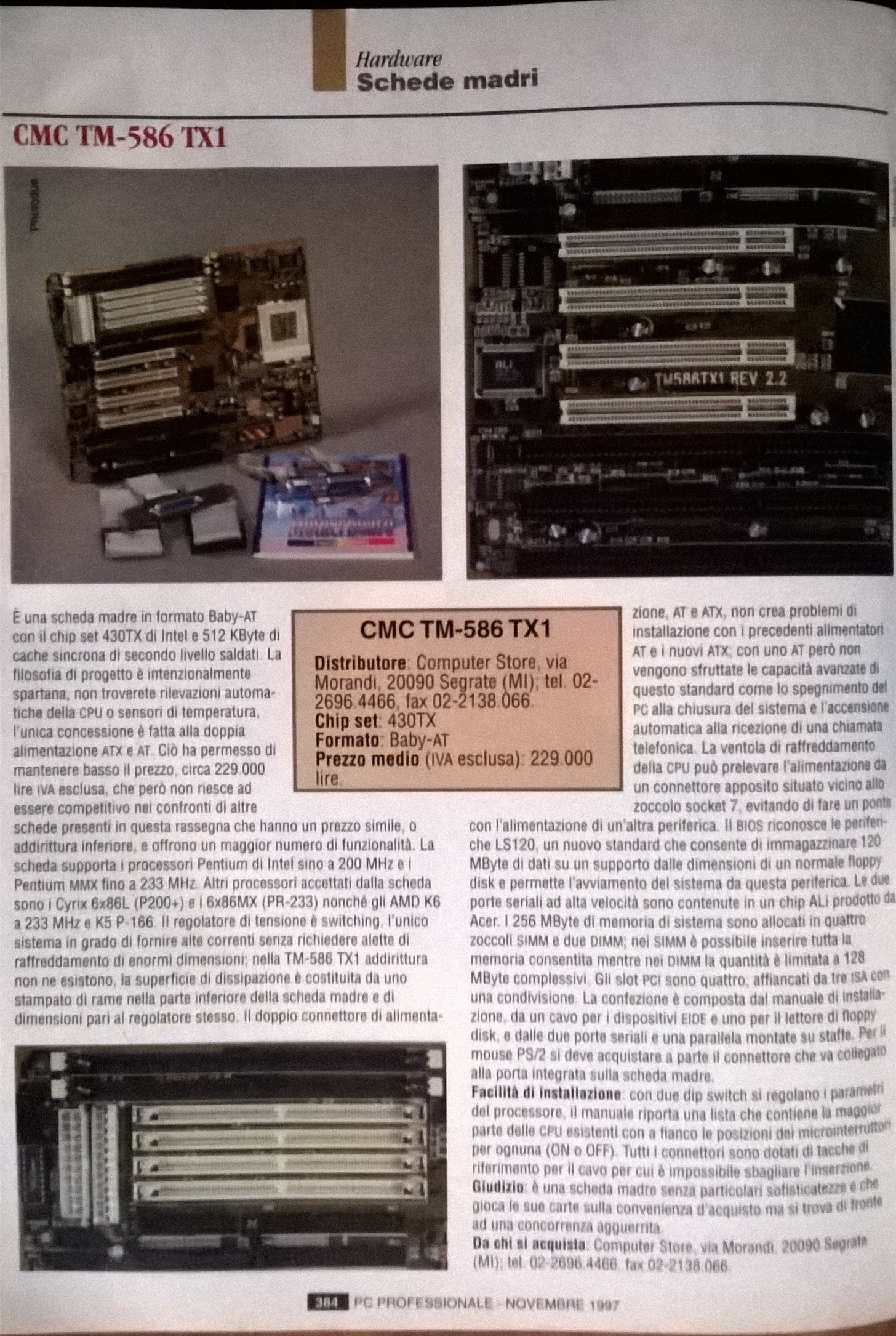 E' curioso notare come alla fine della descrizione di ogni scheda madre venissero forniti dei recapiti telefonici per contattare i distributori e i venditori, mentre al giorno d'oggi ci sono soltanto link di siti web! ?