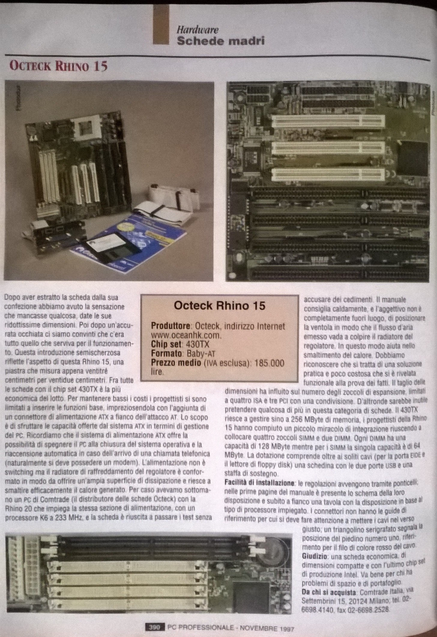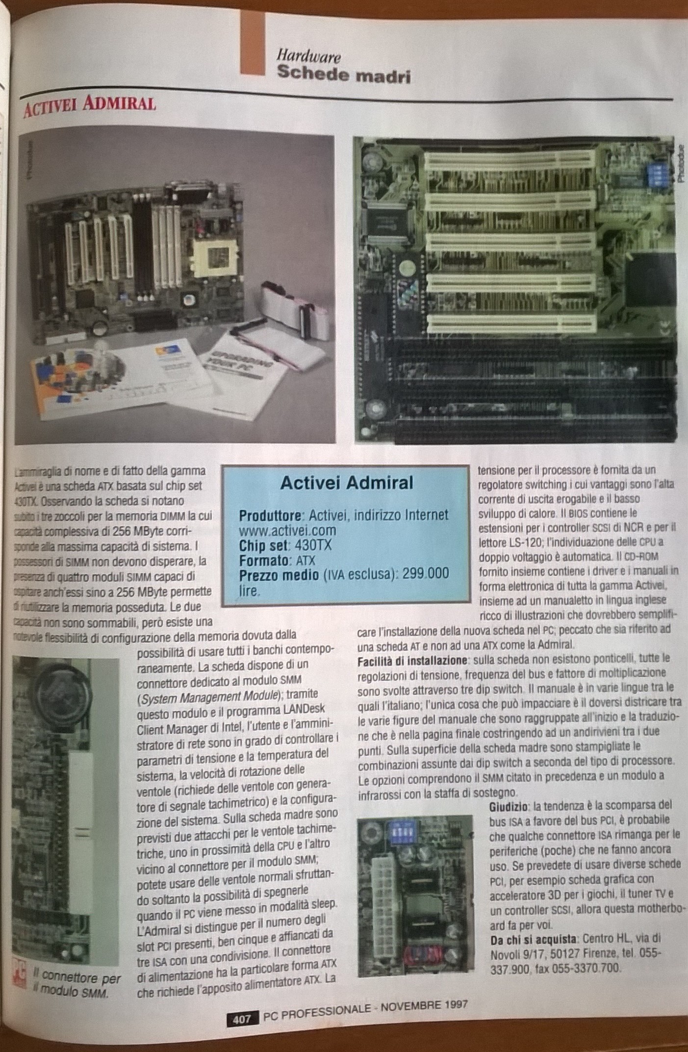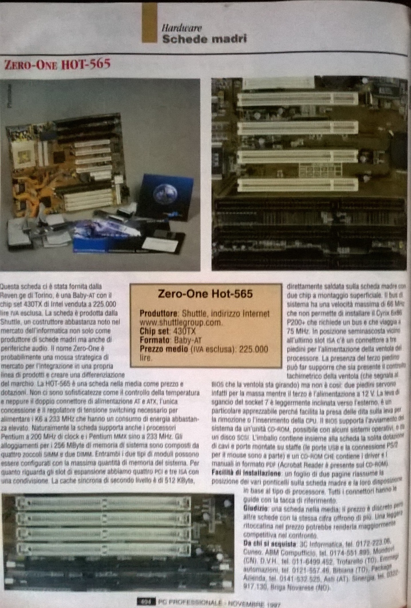 Prego, in verità piacciono molto anche a me, e di quelle vecchie riviste ne ho ancora da recuperare parecchie, alcune sono forse più vecchie, comunque solitamente le prove che facevano, erano di PC completi, ecco in quel caso era difficile trovare delle foto della scheda madre, al limite c'era una foto del PC aperto, ma se aveva parecchie schede installate, non è che si potesse vedere molto.