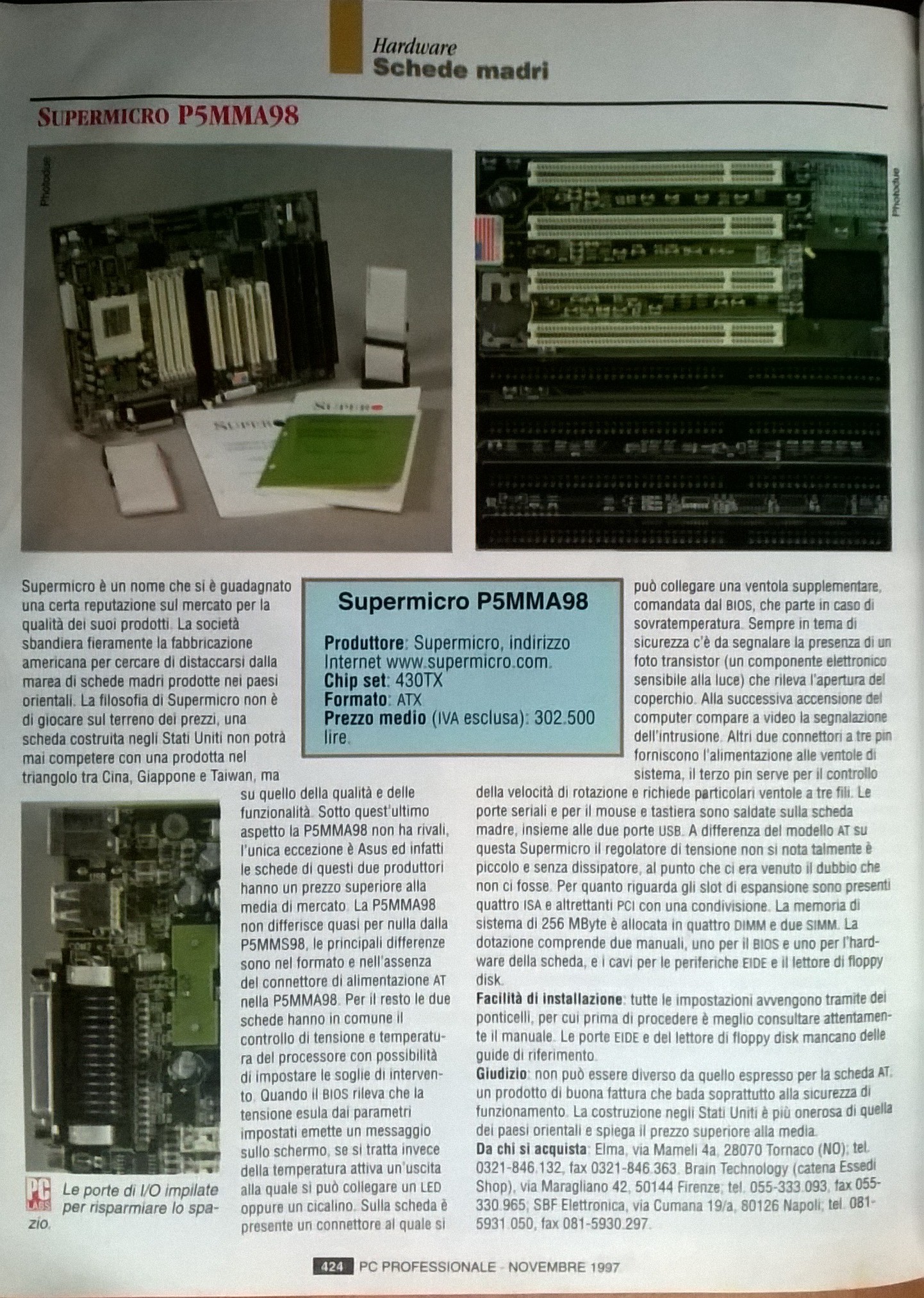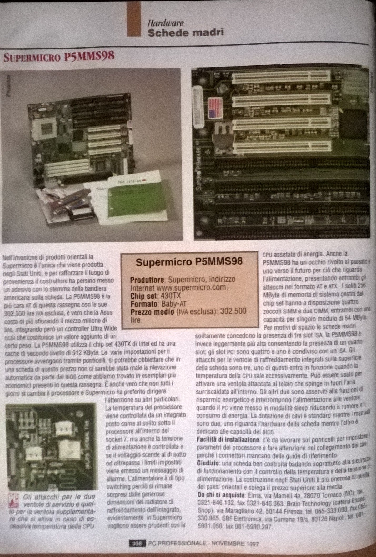 Addirittura con la cifra spesa all'epoca per comprare una Asus P55T2P4S (circa 600 mila lire IVA compresa), al giorno d'oggi si può acquistare un intero PC nuovo di fascia medio-bassa!! ?