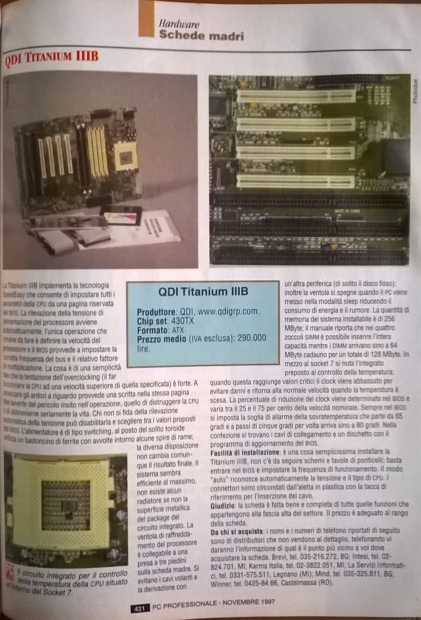 Ho comunque da qualche altra parte, prove o analisi di altre schede socket 7, di quella rivista in particolare ho un CD con i primi 100 numeri in pdf, se riesco a trovare il tempo di guardarlo e di tirar fuori qualcosa di interessante, magari lo allego qui (prossimamente).