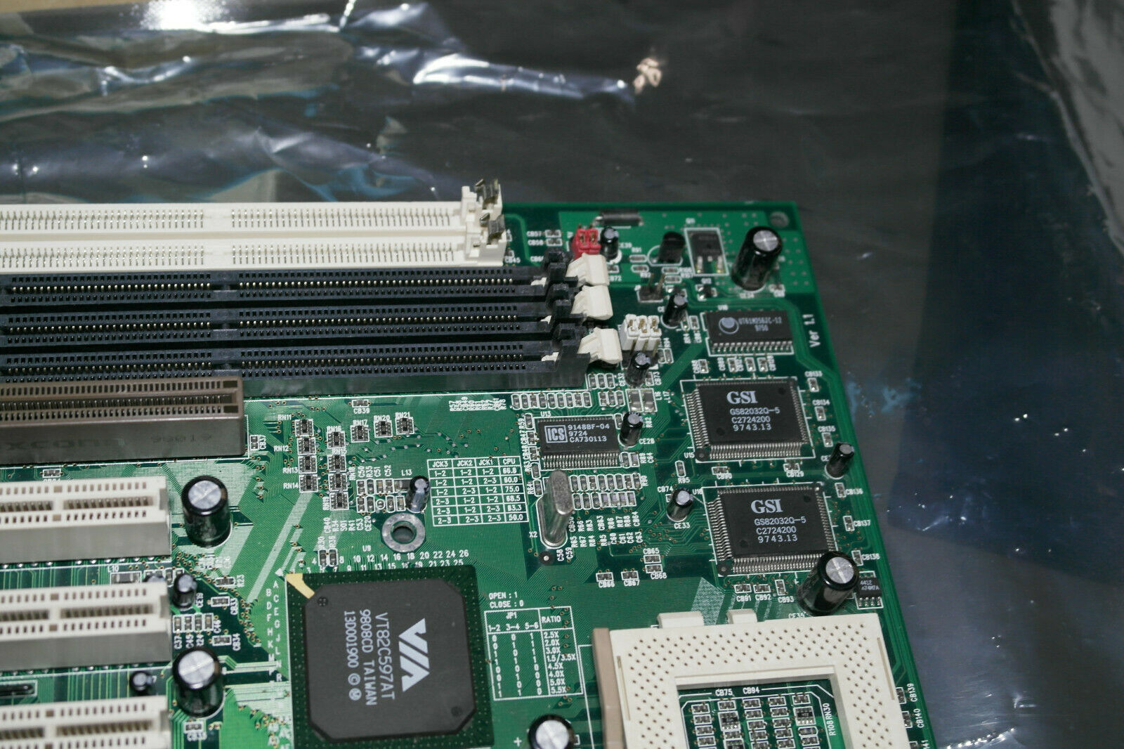 Come puoi vedere ho vari PC in lavorazione, la Soyo ho scoperto che ha un BIOS vecchio, ho trovato un vecchio libretto dove annotavo le info dei PC (risale a più di 25 anni fa), tra queste c'era annotata la riga del BIOS della SOYO 5BT5 ver1.X, quella aveva un BIOS del 07/14/97 BT-1A2, questa che ho adesso Ver2.X ha un BIOS del 11/11/97 BT-1B2, quindi immagino sia appena successivo a quello originale, o sia il primo usato in quella revisione di MB, tra le varie info annotate, c'è anche una MB che non tornò più dall'assistenza, si tratta di una Procomp Mod.B581 Rev. 1.1, una i430VX, immagino avesse i regolatori di tensione lineari, che l'MII-300 arroventò, al punto che deve aver danneggiato almeno uno dei mosfet.