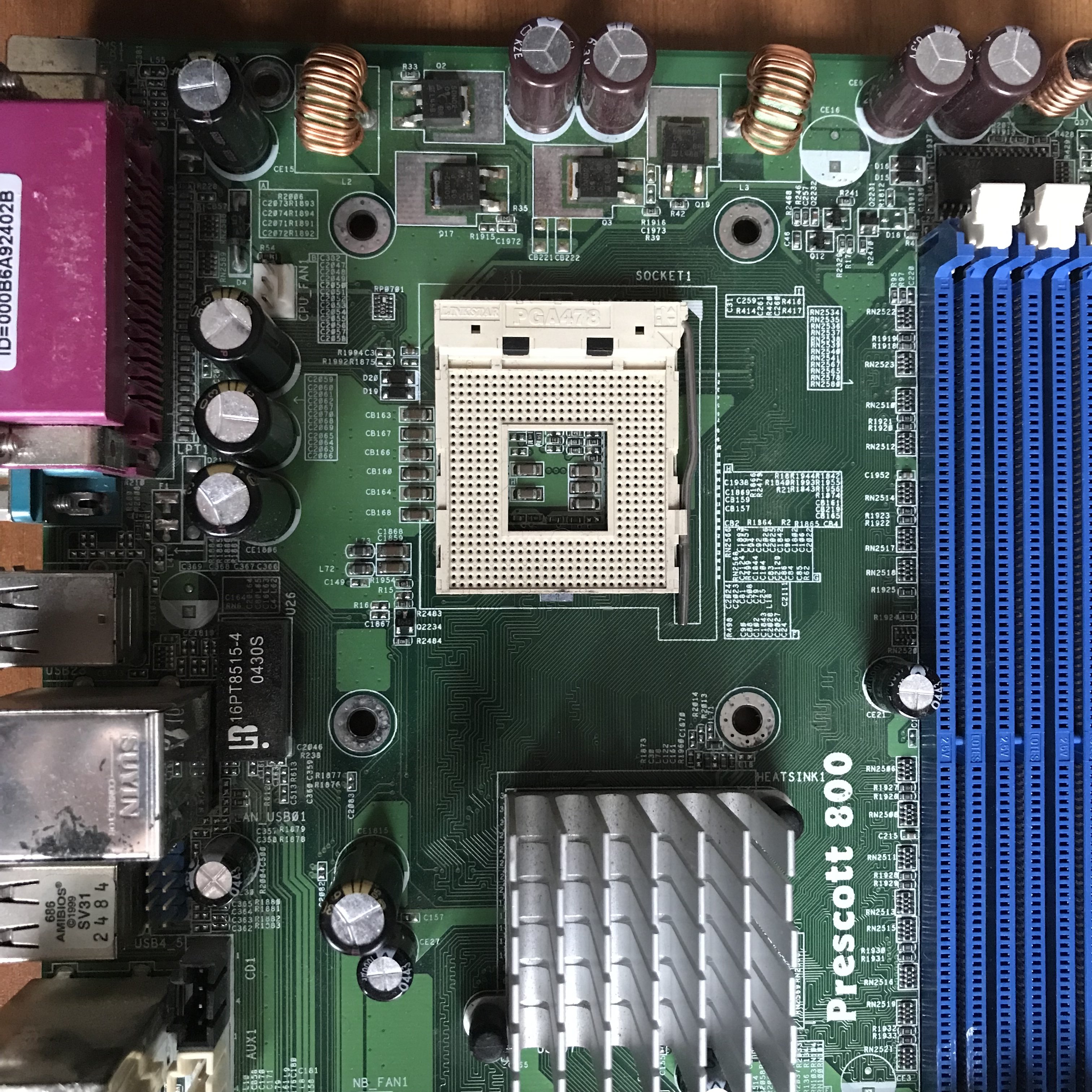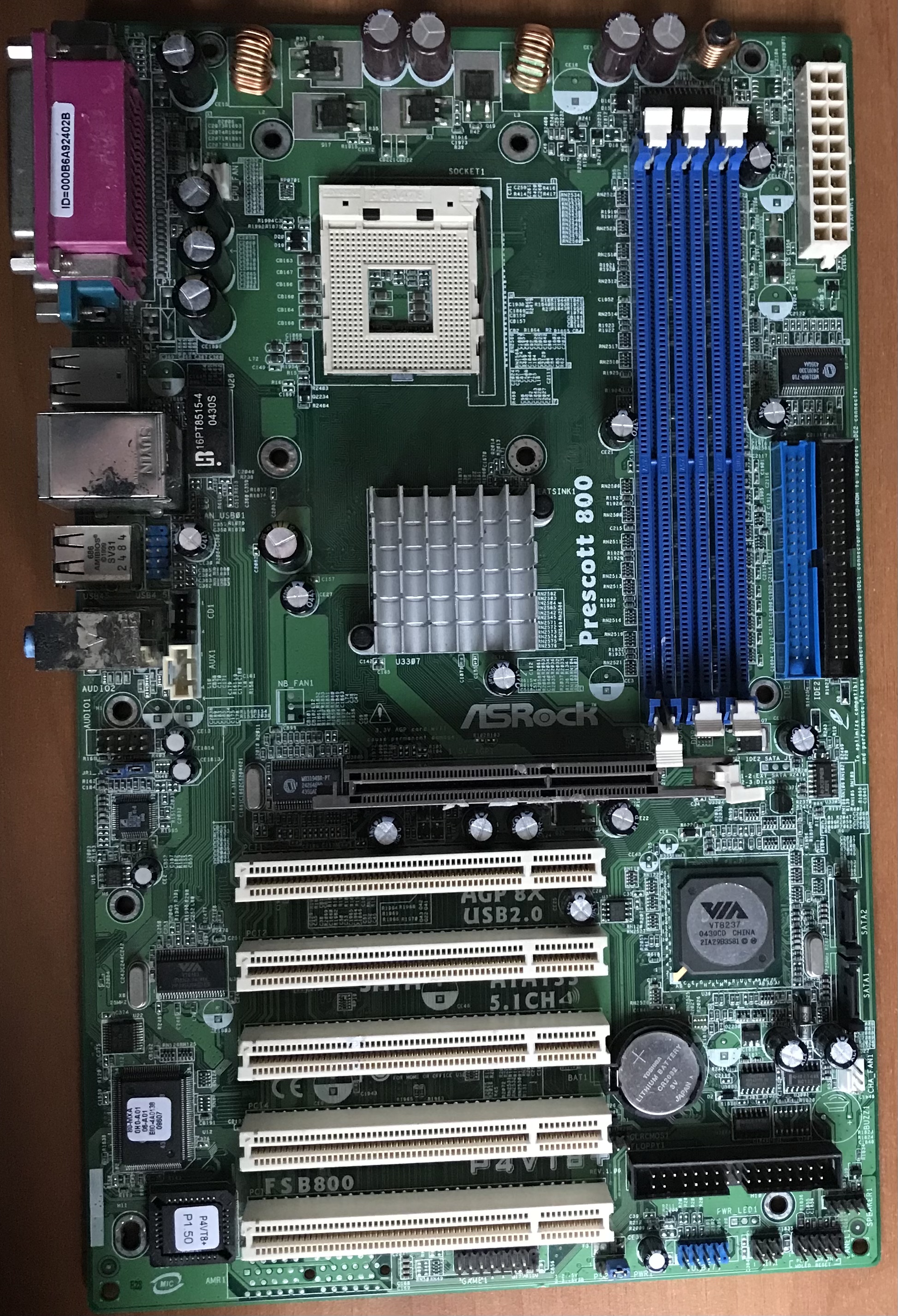 Stamattina, ho trovato un po' di tempo per riparare una scheda madre (ASRock P4VT8+ REV. 1.06), il grosso del lavoro era stato fatto non molto tempo fa, restava solo da risaldare alcuni condensatori (5) e un SMD, la parte più difficile era l'SMD, anche se non era molto piccolo, era molto vicino agli altri, saldando bisognava fare attenzione a non toccare quelli vicini, con l'aiuto di una pinzetta sono riuscito a posizionarlo con precisione, risaldarlo non è stato semplice, ma dopo alcuni tentativi la saldatura è riuscita.