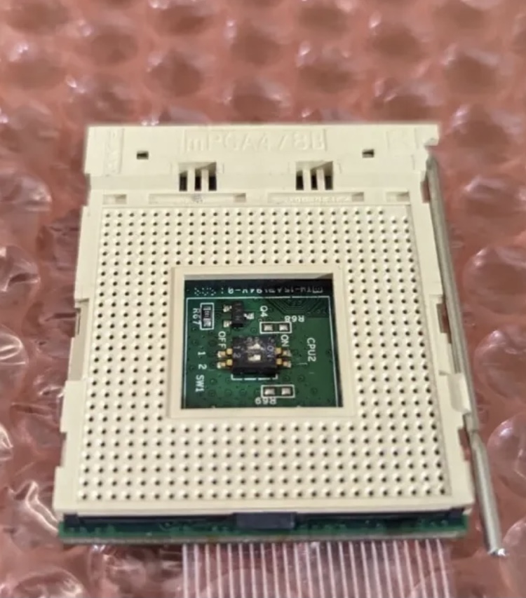 Sempre in tema di cose particolari, recentemente ho visto questo adattatore, utile per chi ha comprato qualche cpu particolare o costosa, e voglia cambiare scheda madre (forse perché guasta?), non saprei quanto costava l’adattatore, ma non credo fosse alto (il prezzo), oggi penso siano rarissimi, e di conseguenza anche costosi.