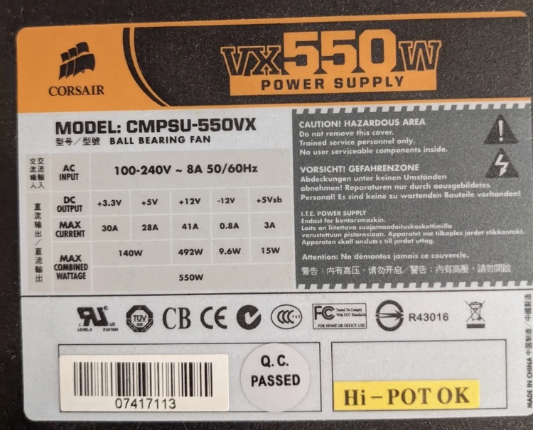 Sto anche pensando di recuperare da un’altro pc l’alimentatore Corsair, ne metto una foto presa da IN, dovrebbe essere identico, ma potrebbe esserci qualche dettaglio differente.