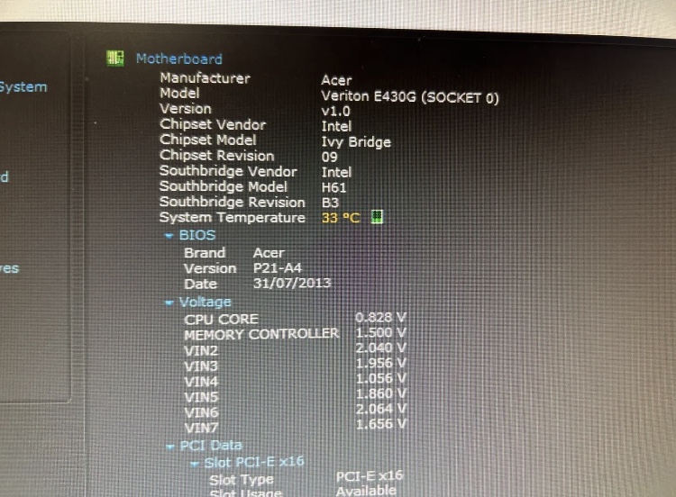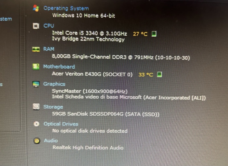 Ieri è arrivata la MB Acer con l’i5, ne metto una breve descrizione, la cpu è un 3340 da 3.1GHz (Quad core), 8GB con singolo modulo Ram ddr3, non so che PCx00 sia, la Ram è una fury hyperX (Kingston) con cover di un bel colore blu, c’è integrato il video l’audio e la LAN, ma è inclusa una LAN PCI-E nel caso quella integrata non funzioni, il dissipatore non è Intel, ma è molto simile, purtroppo non ci sono etichette, penso si tratti di uno usato sui PC Acer.