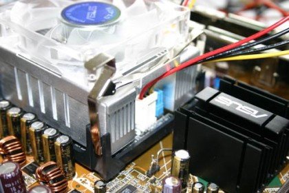 La scheda usata in quel link è della Asus, nella foto noterete i dissipatori aggiuntivi, sui chip di cache e chipset, segno evidente che usando frequenze alte è sempre meglio tenere basse le temperature di componenti, che normalmente non necessitano di alcun dissipatore.