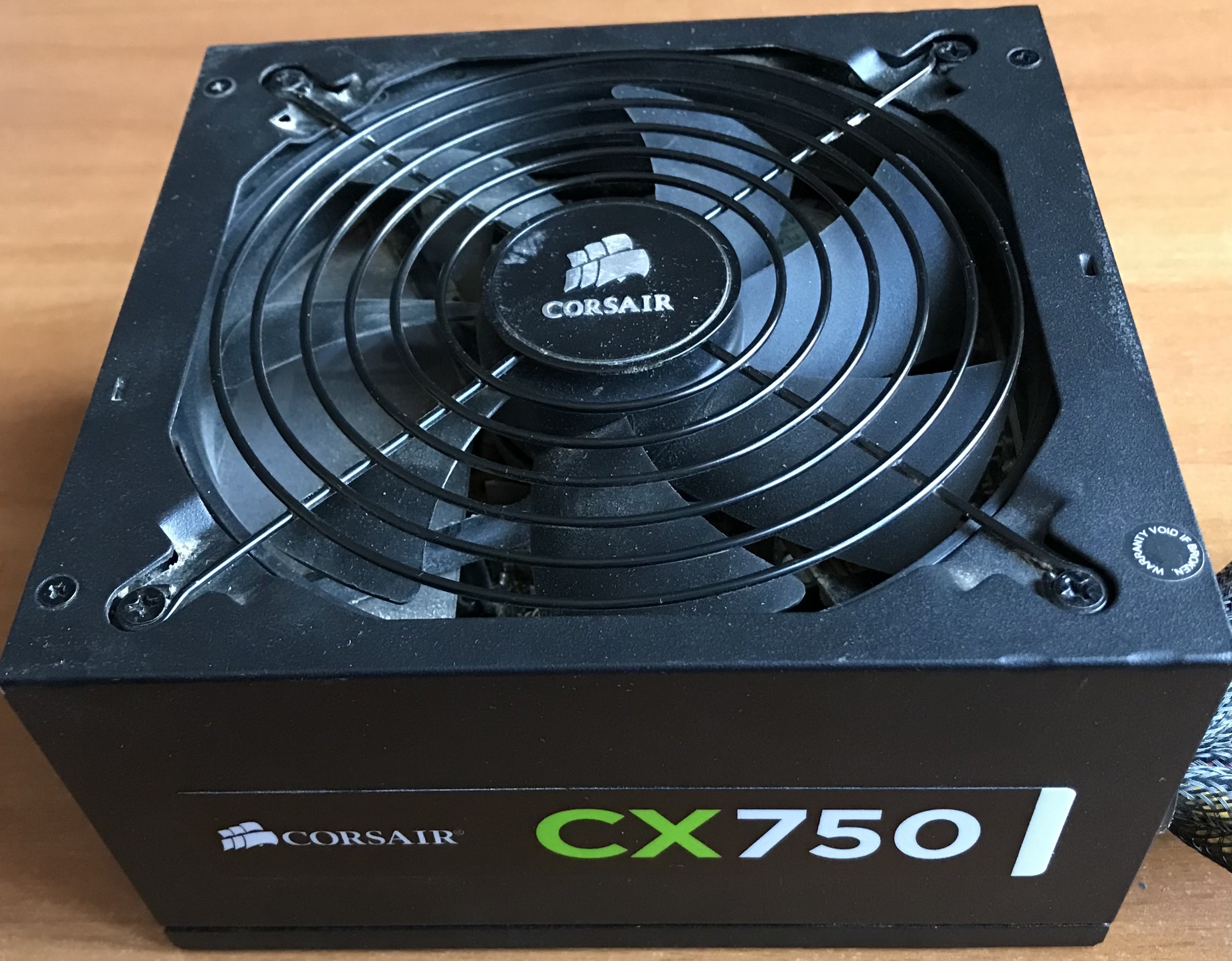 Oggi ho recuperato un alimentatore per il PC Internet i5, si tratta di un Corsair da 750W, non è modulare come l’HX che ho guasto, ma sembra un modello abbastanza simile, forse ? (anzi sicuramente) più economico, ma penso sia altrettanto valido, si tratta di un CX 750, ho fatto