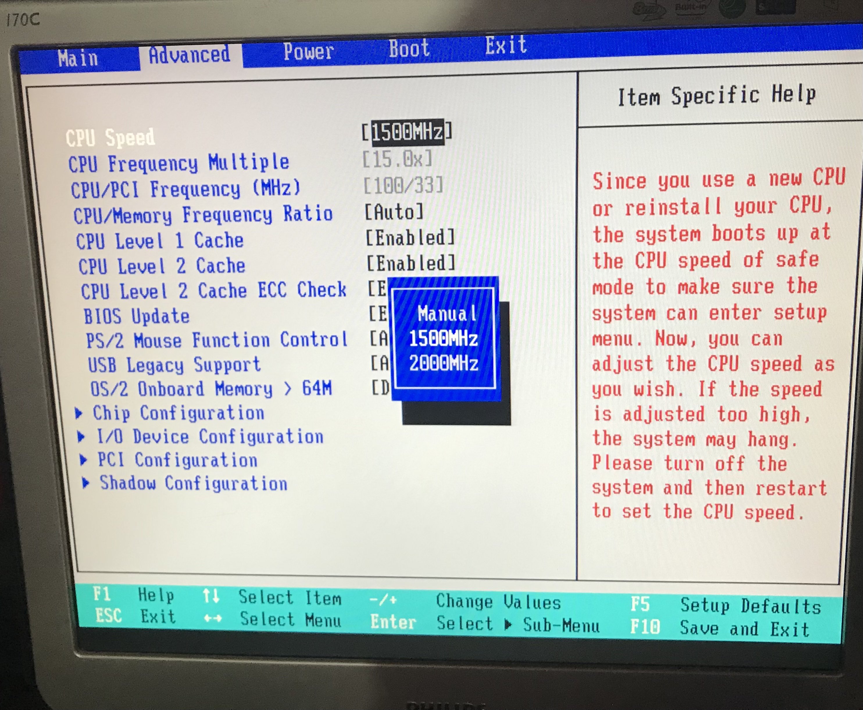 Collegato un alimentatore, che utilizzo sul banco per vecchi ? PC, premo il pulsante PWR-ON e appaiono alcuni codici, seguiti da un paio di schermate, la prima in cui si legge in grande il modello (A7S333), l’altra è una schermata interna del BIOS, in cui si può vedere il multi 15X, e le frequenze selezionabili 1500 (200) o 2000 (266), secondo me la CPU potrebbe essere un Athlon XP 2400+, eventualmente non lo fosse potrebbe essere un Sempron 2500, questo potrò dirlo con precisione in seguito, tramite qualche programma diagnostico, potrò rilevare il model e stepping, e capire a cosa corrisponde.