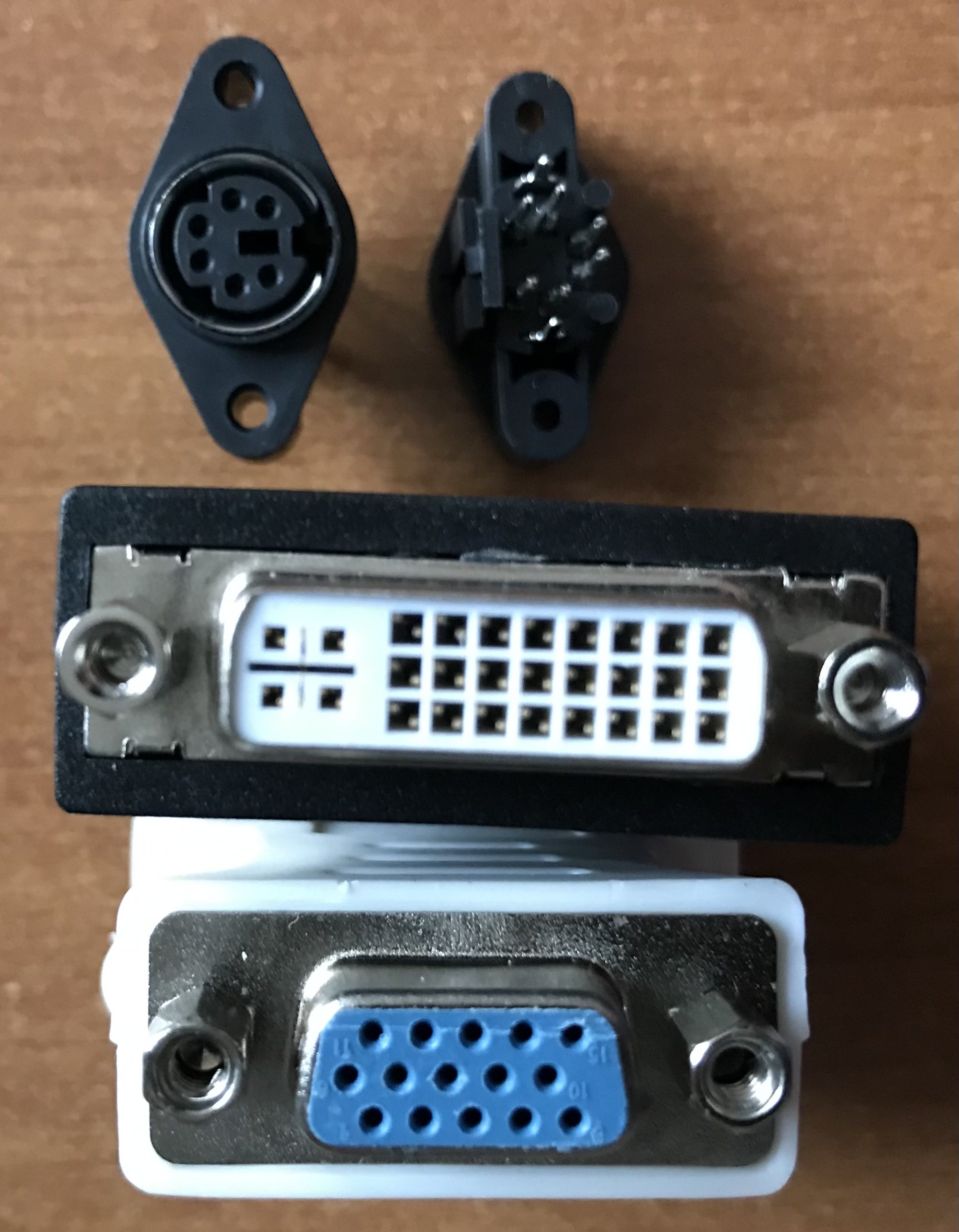 Oggi penso di poter risolvere entrambe i problemi, quello teoricamente più semplice è l’uscita video, proverò a collegare il monitor alla porta ? DVI, ma il monitor Philips che uso per le prove, non so se abbia un ingresso DVI, per cui userei un adattatore DVI-VGA, in realtà non è possibile, ma ho reperito un paio di adattatori che fanno DVI-HDMI e HDMI-VGA, se funzionano dovrei avere una schermata con i colori giusti. ?