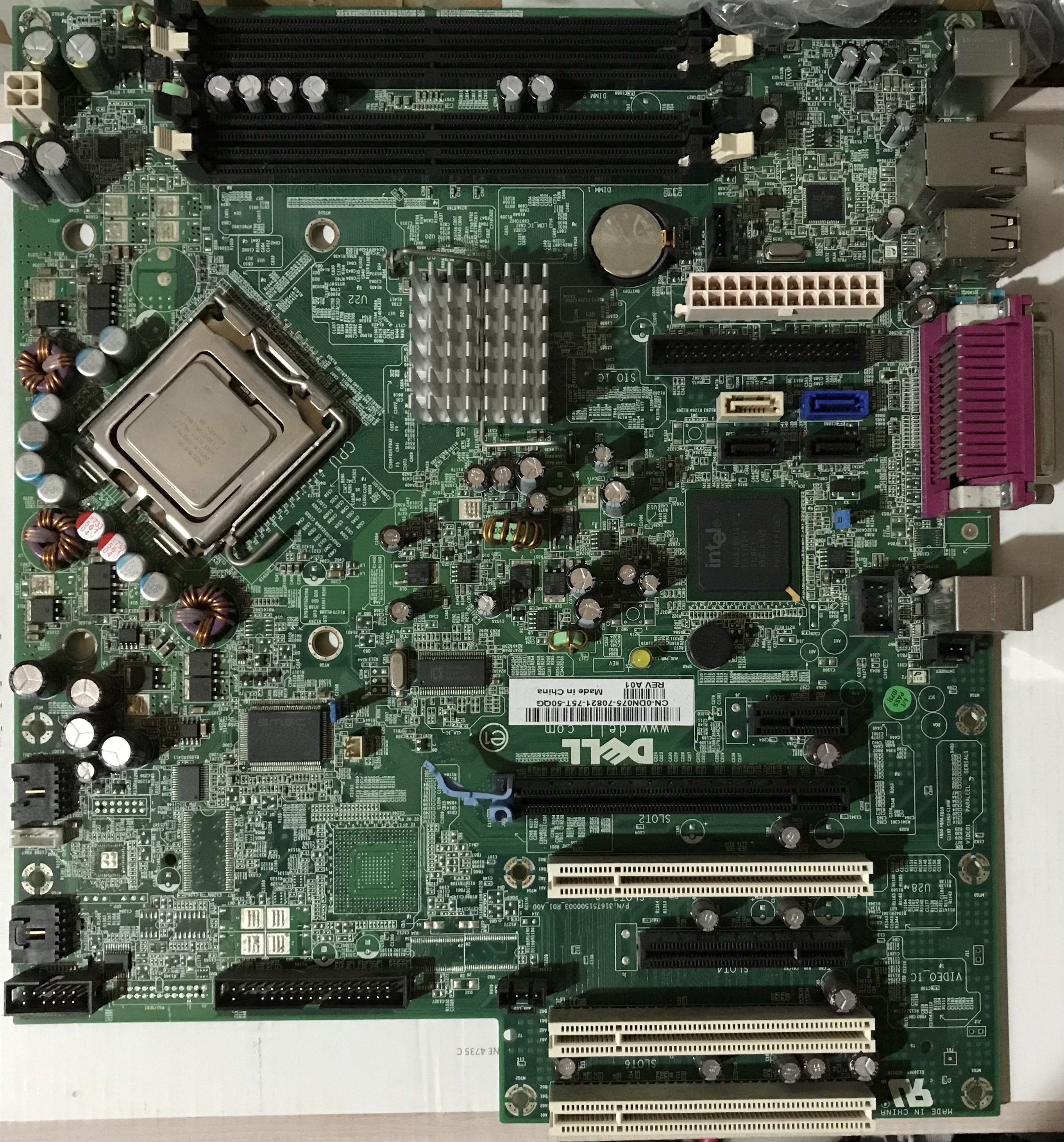 Stamattina ho dato uno ☝️ sguardo ? dentro la scatola ? contenente la MB Dell BTX, sinceramente non ricordavo avesse la CPU, che invece era presente ?‍♀️, si tratta di un Intel Core Duo 2 6400, quindi per capirci con FSB 1066 e circa 2GHz di frequenza, guardandola un po’ più attentamente, non vedo ? niente da cambiare e sembra tutto a posto ✌️, penso possa essere stata smontata da un PC ormai ? obsoleto, e aggiornato (magari) a qualcosa di più tradizionale?