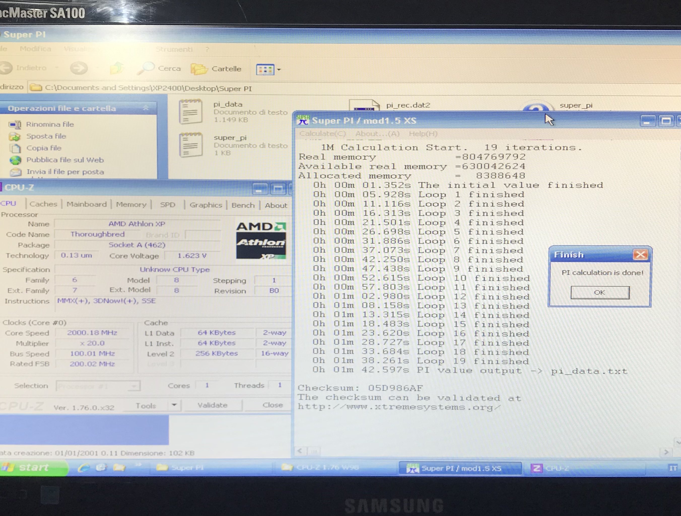 Certamente in questa configurazione, il PC dovrebbe essere leggermente più lento, di quanto purtroppo ? non posso misurarlo, l’unico modo per far funzionare quella CPU senza alcuna modifica ✍️, è mettere il multi 17X e FSB 133, la frequenza finale sale ? a 2267 circa e l’indice PR si avvicina a quasi 3000+, per adesso metto le immagini dei bench a 2000 con multi 20X, appena ? riesco (spero a breve), farò anche quelli a 2267.