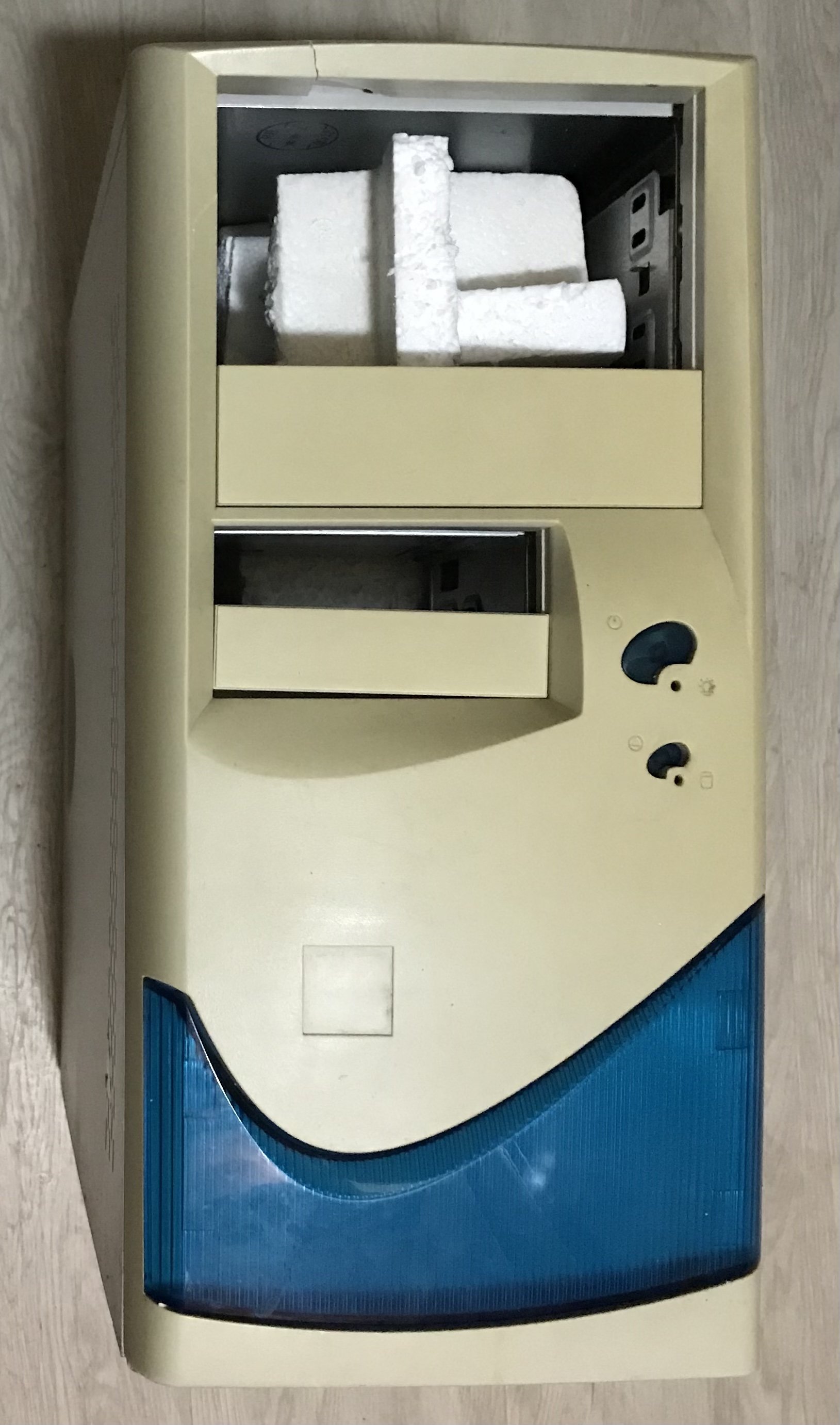 Altro case ? per PC, stavolta è un modello abbastanza datato, dello stesso tipo ne ho già tre, ma di colore differente, uno arancio e due verde, oltre a questo blu, credo ci sia anche quello rosso, poi magari ? esistono altri colori, tipo che so’ giallo o altri sempre trasparente, roba datata, ma che a me non dispiace.