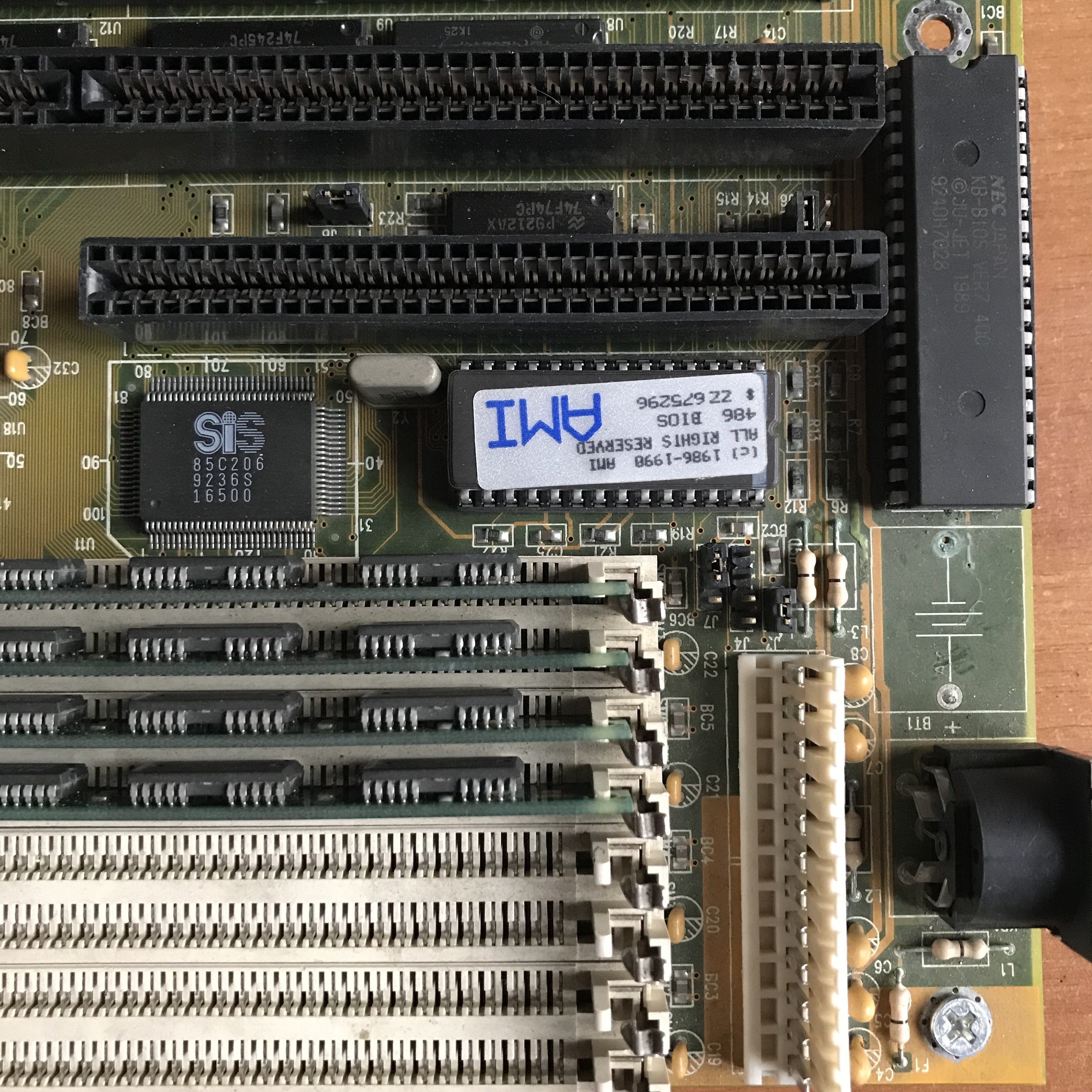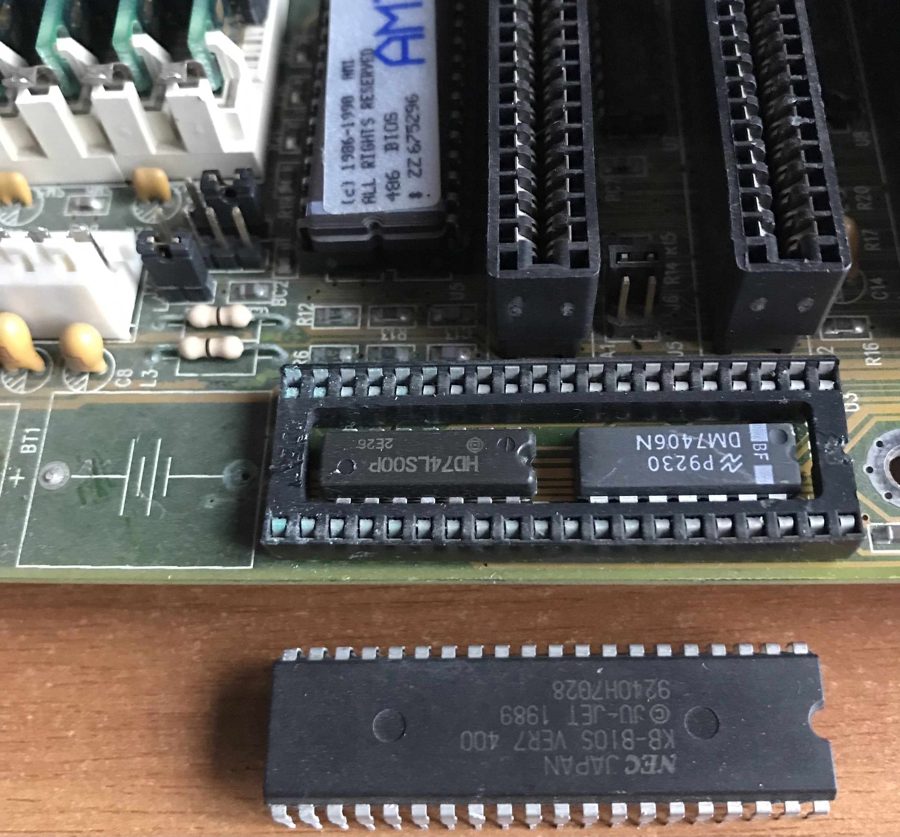 Il chip KB-BIOS, ha bisogno di un trattamento, che riporti i pin a nuovo, quello che faccio di solito, è passare una carta abrasiva molto fine, e funziona, l’ho fatto nel 386DX40, e ha funzionato!!!